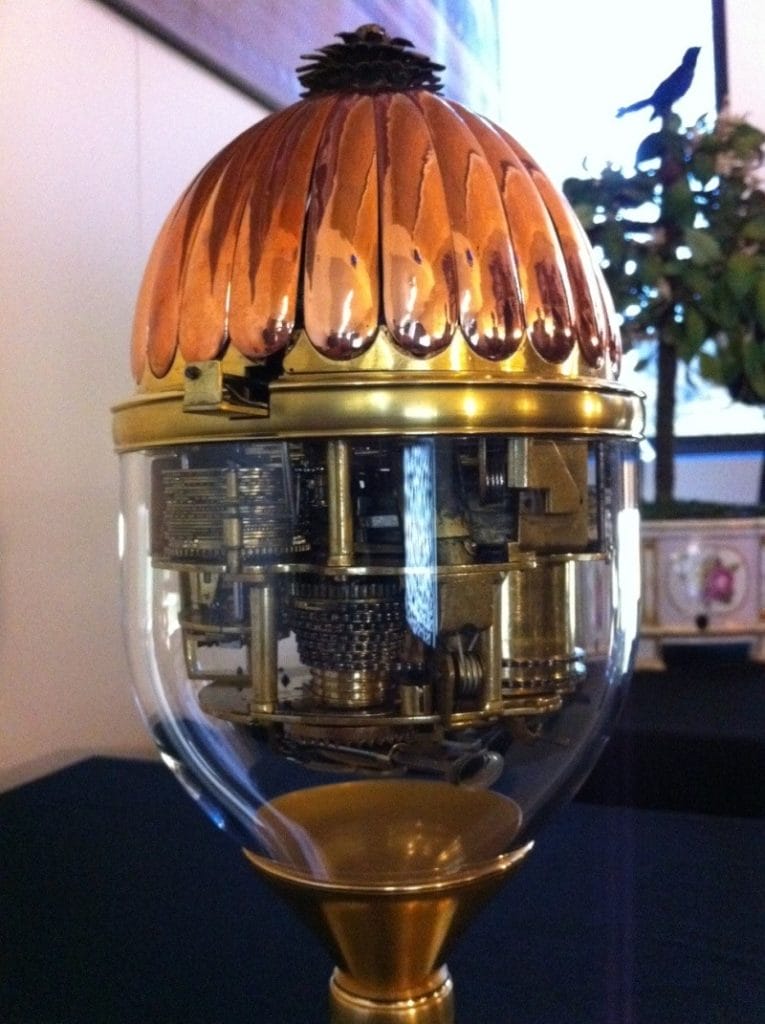 Un salon du bâtiment est destiné à nous présenter quelques automates. On y retrouve une partie d’une urne funéraire représentant une scène champêtre et ornithologique faite de sons et de mouvements.