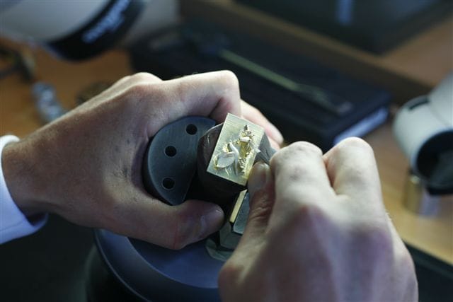 La gravure se fait en différentes étapes. On peut soit partir d’un bloc brut, soit d’un moulage. Ils utilisent alors une imprimante 3D qui va mouler un sujet. Le graveur vient ensuite travailler sur le moulage pour le parfaire et lui donner une finition parfaite. Quelle que soit la technique, il y a toujours des opérations manuelles qui vont faire de ces montres des pièces uniques. Le graveur apportera toujours la touche finale qui est la plus-value du produit.