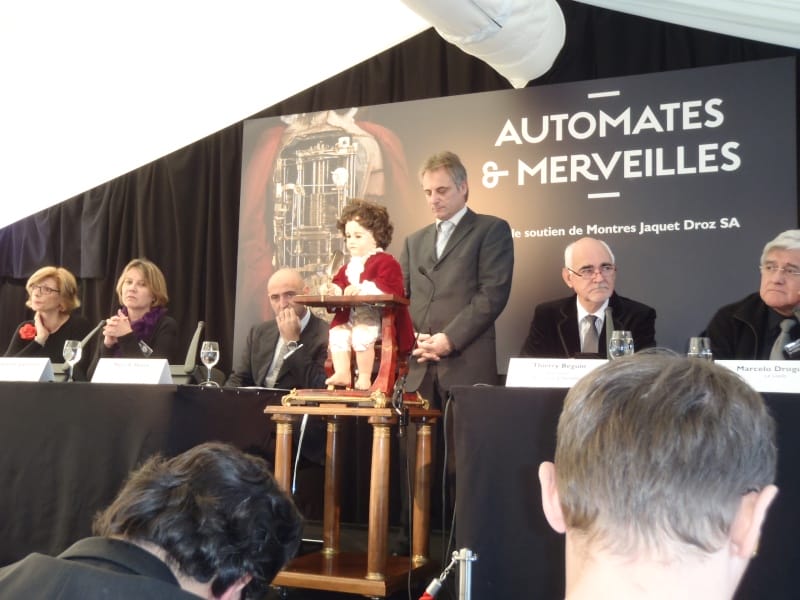 Vendredi 18 novembre 2011, Montres Jaquet Droz SA réunissait une centaine de personnes pour annoncer le projet Automates & Merveilles qu’ils soutiennent. De nombreux journalistes venant de toute l’Europe avaient été conviés à assister à une conférence de presse suivie d’une visite des ateliers Jaquet Droz dans leurs locaux flambant neufs de La Chaux-de-Fonds. Les médias français étaient représentés par La Revue des Montres, Montres Magazine, Le Monde.fr, et l’association Passion Horlogère.