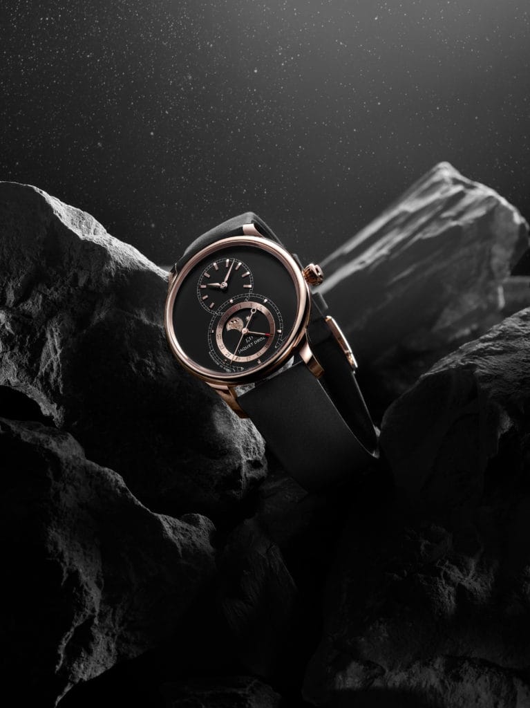Aujourd’hui, Jaquet Droz retravaille en profondeur son icône pour en offrir deux variations exclusives qui reflètent son double ancrage, avec d’un côté le respect de sa bienfacture séculaire et, de l’autre, la volonté de projeter la Grande Seconde Moon dans le XXIe siècle.