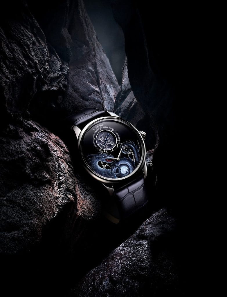 Cette pièce exceptionnelle sera livrée au collectionneur accompagnée de l’œuvre originale acquise auprès de John Howe. Jaquet Droz prévoit de prolonger cette initiative avec d’autres créations artistiques conçues spécialement pour ses clients, donnant ainsi naissance à des paires uniques : une œuvre d’art et sa montre-sœur.