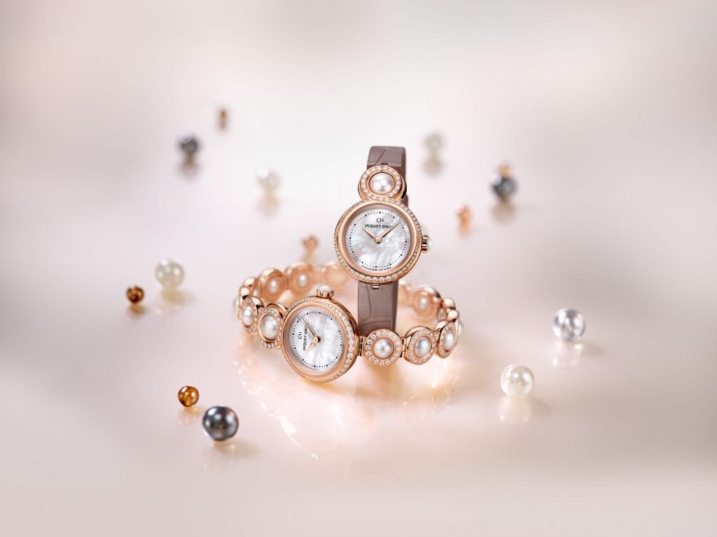 Les trois versions proposées avec une boite en or rouge 18 carats affichent une personnalité différente, offrant la possibilité d’un bracelet simple tour en alligator de couleur taupe ou, pour un porté plus précieux, un nouveau bracelet développé spécialement pour la Lady 8 Petite. Il a été conçu par Jaquet Droz pour privilégier souplesse et confort au sein d’une composition minérale inédite.