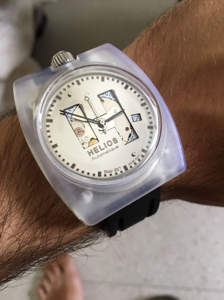 Rares sont les occasions où l’on peut croiser la mécanique horlogère dans une école d’ingénieurs en mécanique générale, mais l’école avait sous-estimé ses capacités. Souhaitant redonner vie au projet Hélios, avec l’aide d’enseignants et de camarades, nous nous étions engagés dans la transformation de la montre réalisée en BTS en prototype avancé et automatique. Une première pour l’école ! A la fin de la quatrième année, la première Hélios automatique venait de naître, sous les traits de son ainée solaire, et son développement se poursuit toujours aujourd’hui.