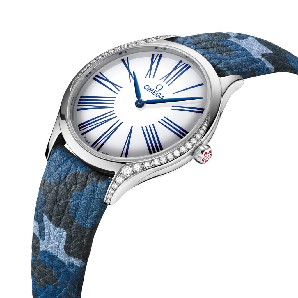 Les nouveaux bracelets sont dotés de boucles et de passants en acier inoxydable et se déclinent en deux motifs camouflage : bleu et beige. Ils sont également disponibles en différentes largeurs correspondant aux boîtiers 36 et 39 mm de la collection Trésor 2018.