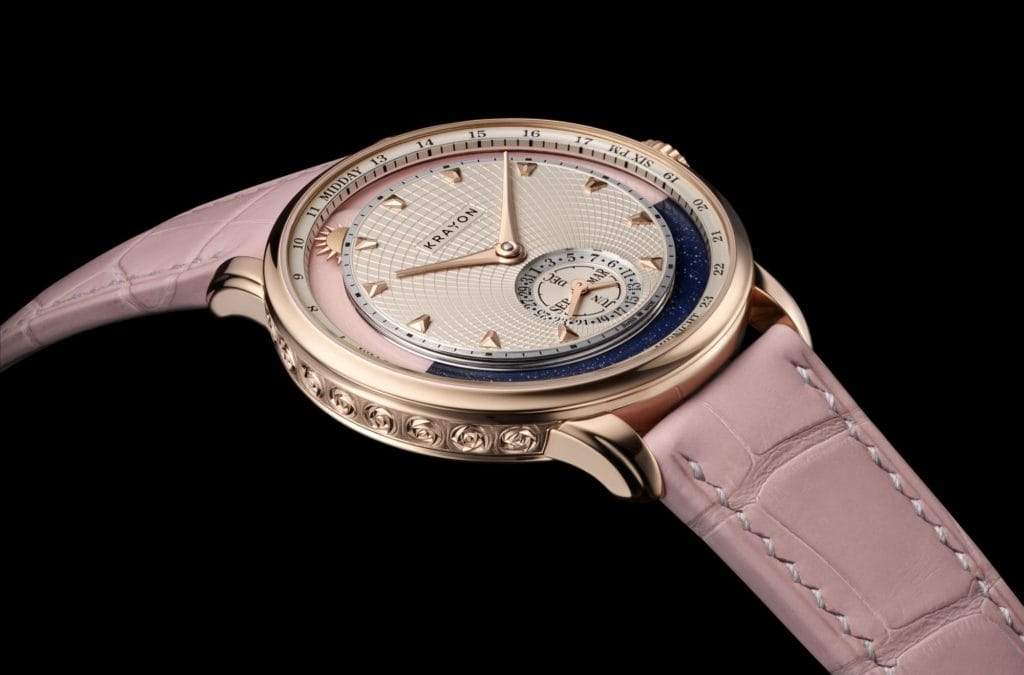 2021 voit la naissance de la première montre féminine Krayon. Baptisée « Lady Anywhere », c’est une montre aussi douce et poétique d’apparence, que complexe et virtuose de construction. Un éphéméride sur-mesure, comme un romance mécanique personnelle au féminin.