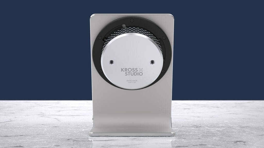 Comme toujours, la conception du produit Kross Studio a été pensée afin qu’il soit fonctionnel. Ce dernier est équipé de deux éléments : le moteur remontoir et son support, dont il peut facilement se désassembler afin d’être rangé tout en remontant une montre. Le support, en aluminium brossé, a été designé par Kross Studio et sublimera les intérieurs les plus design.