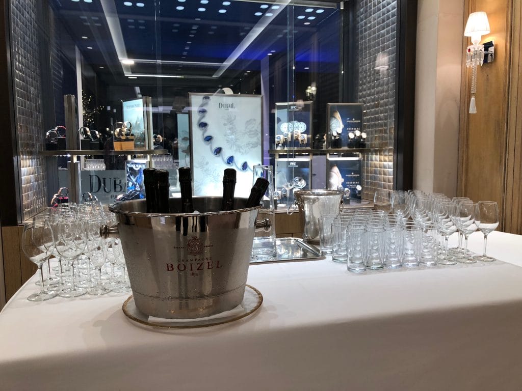 Dédiée à la haute horlogerie et à la haute joaillerie, la boutique Dubail de la place Vendôme a présenté son nouveau visage à l’occasion d’une soirée d’inauguration placée sous le signe de l’élégance parisienne. Si la décoration marquée par la présence d’un mur d’eau et d’un lustre spectaculaire fait toujours la part belle aux matériaux nobles – boiseries fines, marbre rare, colonnes anciennes, fauteuils et canapés de cuir pleine fleur – et aux couleurs pastel agréables à l’oeil, c’est surtout l’agrandissement et la parfaite architecture des espaces qui traduisent l’embellissement de la boutique-écrin.