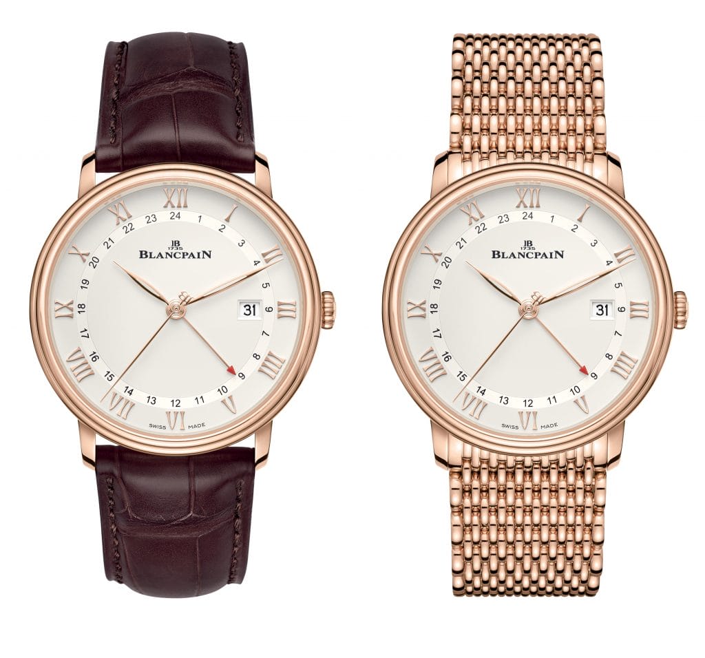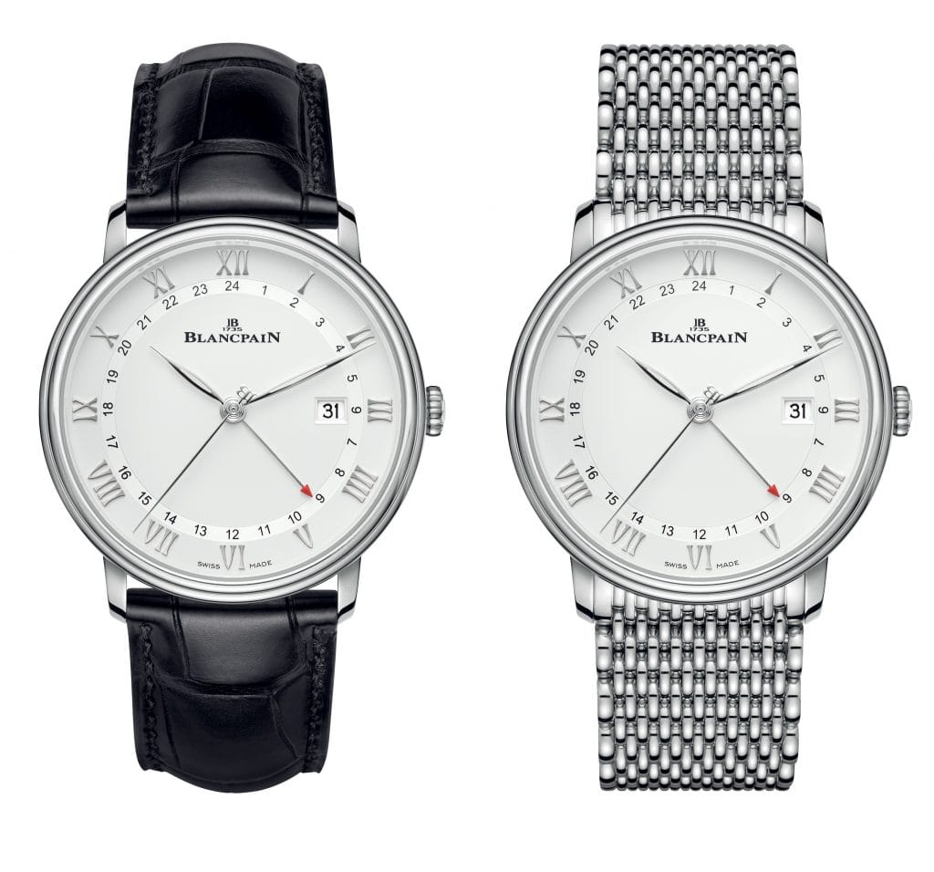 Le boîtier de cette nouveauté possède un diamètre de 40 mm. Il se décline en or rouge 18 carats et en acier, chaque matériau étant associé à une couleur de cadran, respectivement opalin et blanc. Les deux modèles sont disponibles sur un bracelet en alligator ou en métal. Nul doute que les globe-trotteurs du monde entier sauront ainsi trouver chez Blancpain un allié pour leurs voyages.
