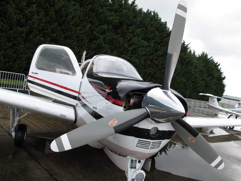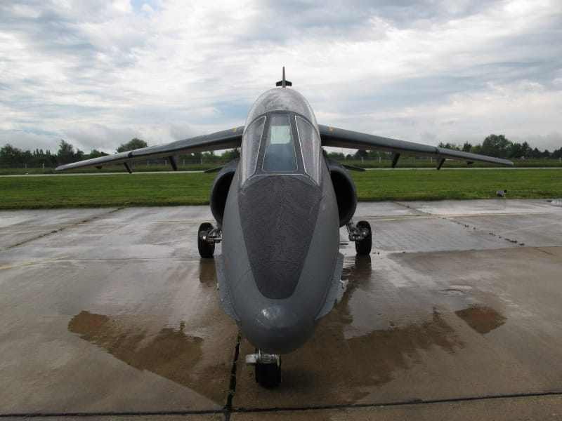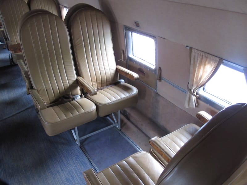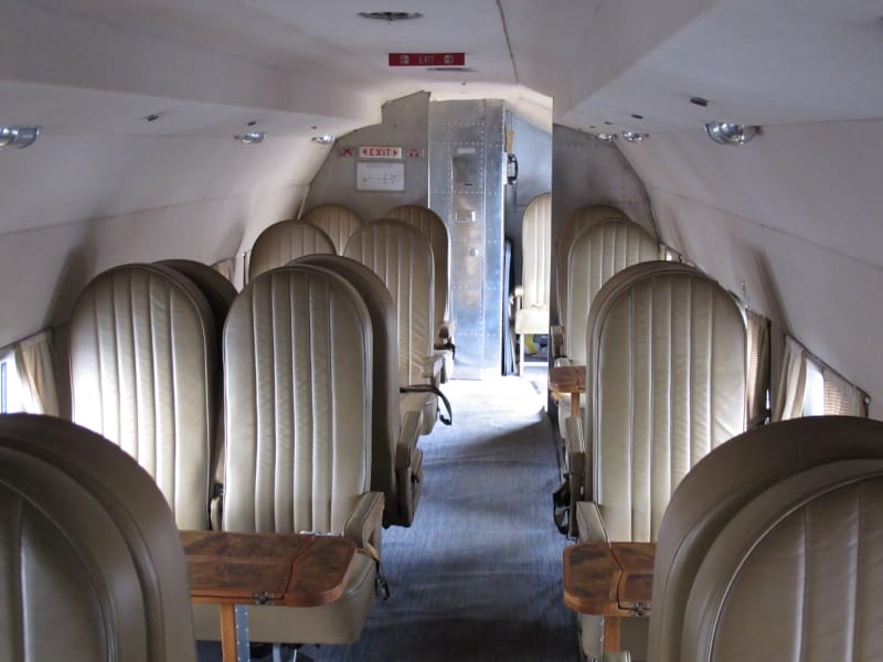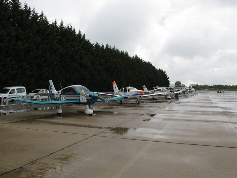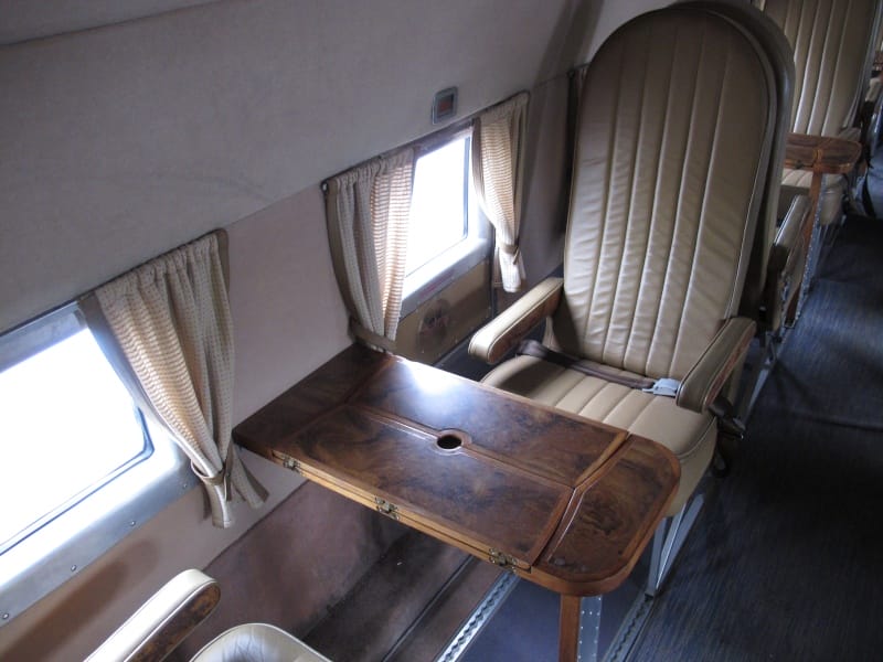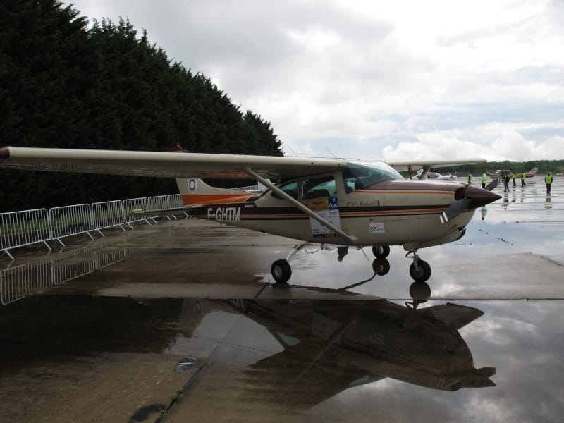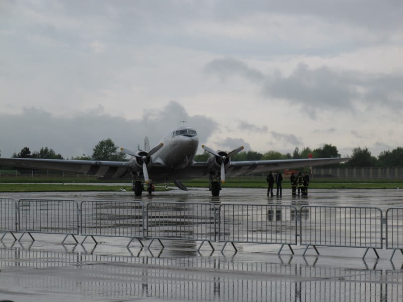 Son aménagement intérieur a été entièrement refait dans l’esprit de la sellerie d’origine, mais sur la base de sièges de Caravelle. Il fut considéré comme le plus bel exemplaire en circulation et a véhiculé la reine Elisabeth d’Angleterre. Nous avons pu assister à son décollage et au survol du terrain. Un instant magique, pour l’œil et les oreilles, un moment d’émotion, qu’a su nous faire partager son propriétaire, visiblement ému et passionné. Il arrive le matin, sous la pluie…