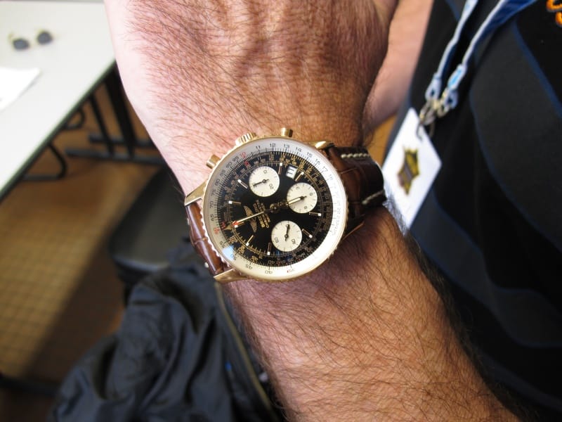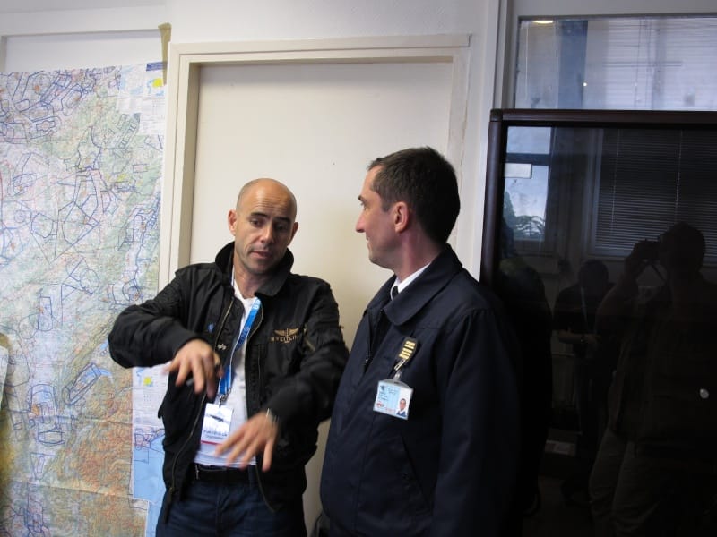 Invités par André Uzan, Directeur Général de Breitling pour la France, Thierry Gasquez, Président de Passion Horlogère, et moi-même avons eu la chance et le plaisir de pouvoir assister à l’arrivée de cette course, prévue initialement vers 10 heures 30, mais dont les premiers atterrissages eurent lieu, sous la pluie et les nuages, avec près de quarante minutes d’avance sur l’horaire préconisé, s’échelonnant ensuite jusqu’en début d’après-midi.
