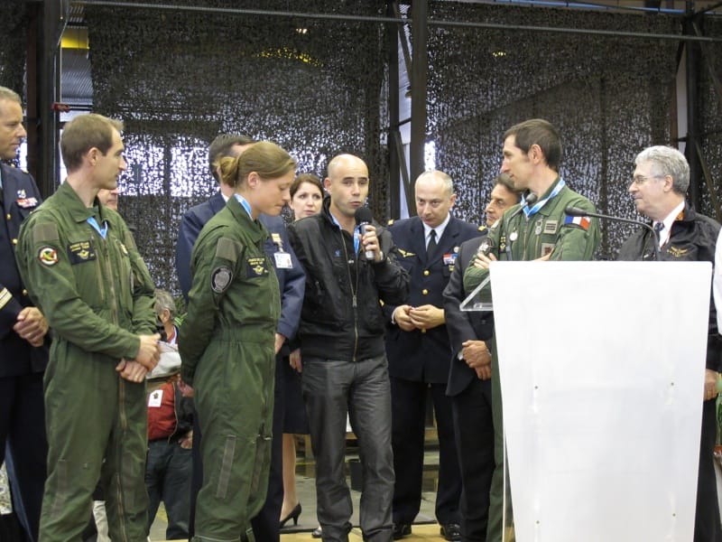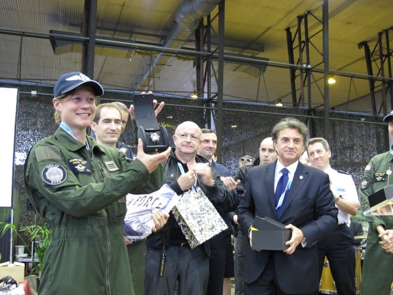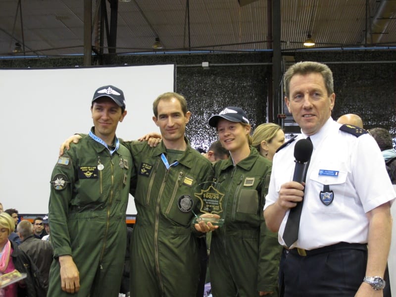 Cette année, l’équipe victorieuse, composée de sept membres, est French Air Force, dont la prestation a bien évidemment réjoui l’encadrement de l’Armée de l’Air, en particulier le Général Vincent Tesnière, Commandant en second des forces de l’Otan en Turquie, le Colonel Jean-Pascal Breton, Chef du SIRPA Air, et le Colonel Bertrand Sansu, commandant la BA107, présents lors de l’arrivée des équipes et pour la remise des prix, assistés par Patrick Gandil pour la DGAC, Alain Battisti, Président de Chalair Aviation, Madame Catherine Maunoury, directrice du Musée de l’air et de l’espace du Bourget, et bien sûr André Uzan pour Breitling.