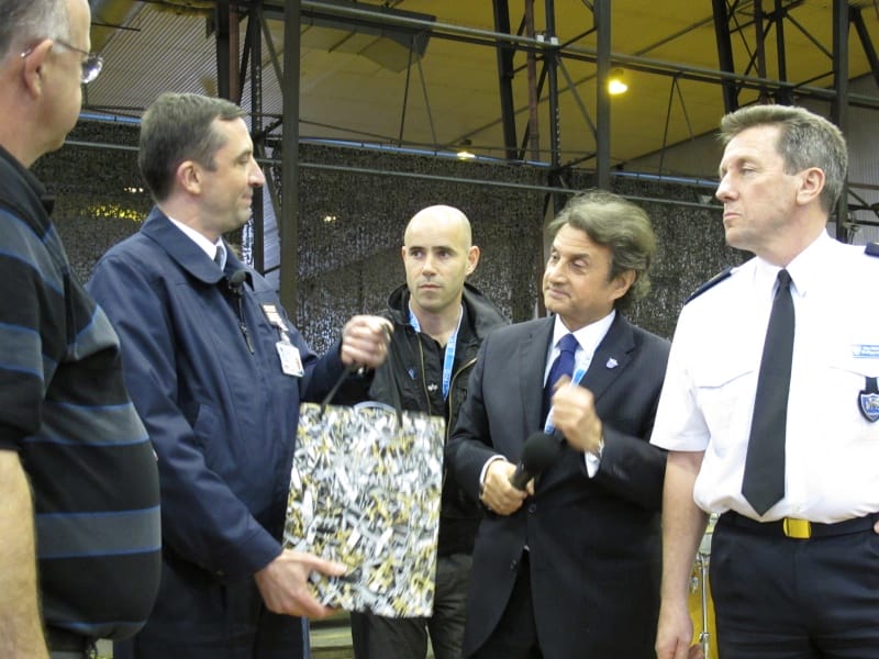 Une fois tout le monde au sol, et plus ou moins reposé, retour sur la base, avec le départ du DC3 et son survol de la piste, sous l’œil toujours ému d’Alain Battisti. Pour récompenser les vainqueurs et les participants, changement de hangar, changement de décor, mais toujours sous la protection des Ailes Breitling.
