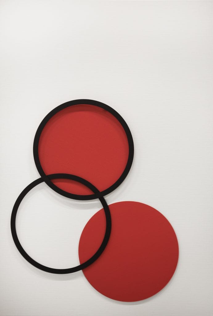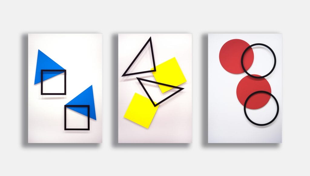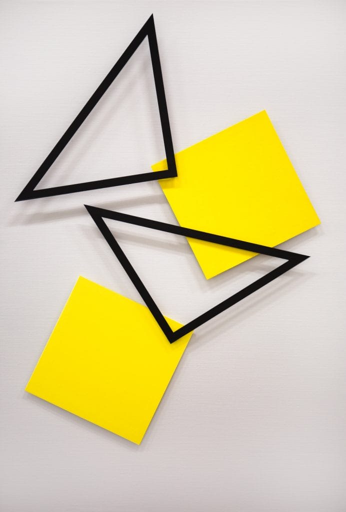 Dynamic Structure 6618 est une œuvre d’art cinétique composée de deux ronds rouges et de deux cercles noirs qui se déplacent lentement à travers une toile d’un blanc immaculé, suivant des séquences coordonnées, parfois lentes puis plus rapides. Ces deux paires d’éléments complémentaires bougent indépendamment l’une de l’autre et l’on peut choisir différents rythmes. Tous les composants sont peints à la main à l’acrylique et assemblés par van Weeghel. Dans un style similaire, Dynamic Structure 10718 comprend des carrés jaunes associés à des triangles noirs, tandis que Dynamic Structure 12718 combine deux triangles bleus et une paire de carrés ouverts. Chacune de ces trois œuvres mesure 85 x 125 x 11 cm. Elles peuvent être exposées ensemble, sous forme de triptyque, ou individuellement.
