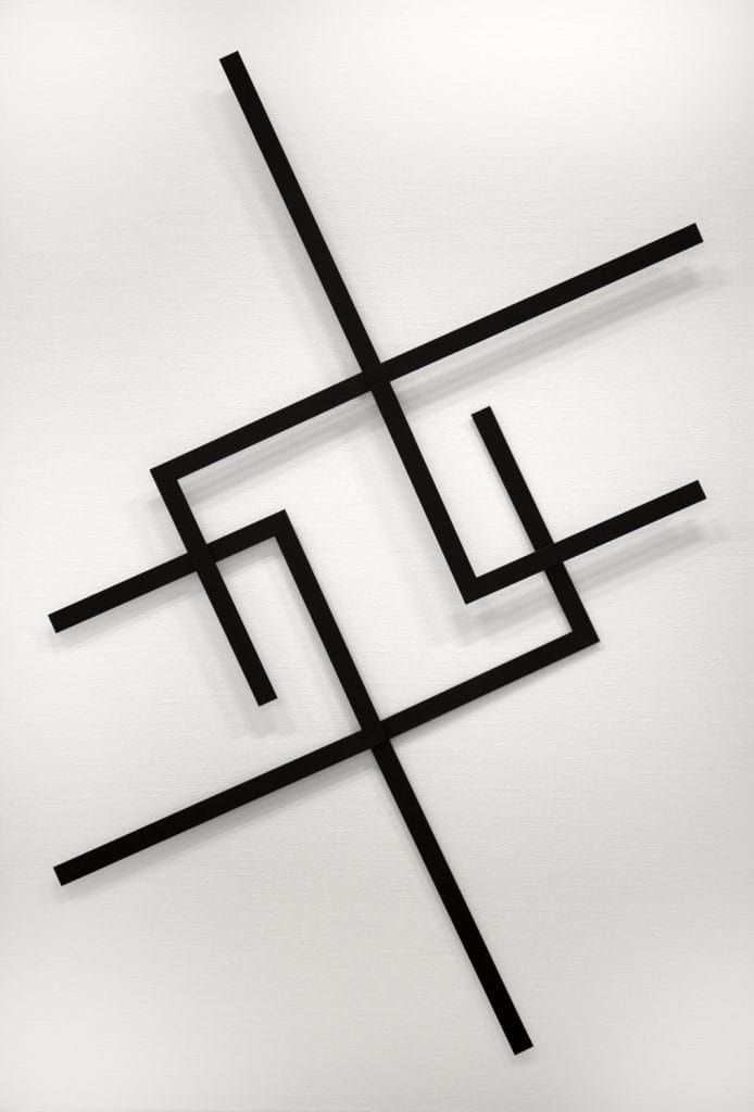 Impressionnante de par ses grandes dimensions, 154 x 154 x 16,6 cm, l’œuvre intitulée Dynamic Structure 171113 offre un contraste saisissant entre ses formes couleur ébène et la toile blanche peinte à la main sur laquelle elles évoluent. L’expérience visuelle est amplifiée par le mouvement ininterrompu de quatre éléments rectangulaires et de quatre lignes qui changent constamment de position en effectuant une rotation à partir de quatre points. Chaque point possède deux axes permettant aux objets de se mouvoir indépendamment les uns des autres dans deux directions différentes et à des vitesses variées. On ne peut qu’être émerveillé face à cette œuvre dynamique dont les motifs se font et se défont sans cesse sous nos yeux.