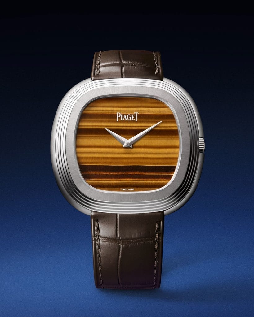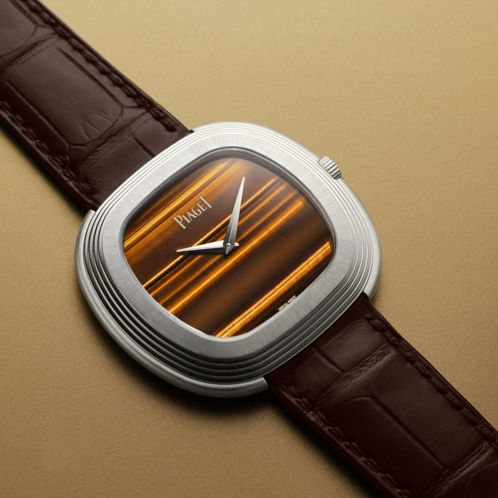 Depuis les années 1960, Piaget explore l’univers chromatique des pierres ornementales, du lapis lazuli au jade, en passant par le jaspe rubané et l’opale boulder. Cette quête esthétique se poursuit aujourd’hui avec de nouvelles interprétations, dont la montre Andy Warhol Clou de Paris en météorite bleue, dévoilée en 2024.