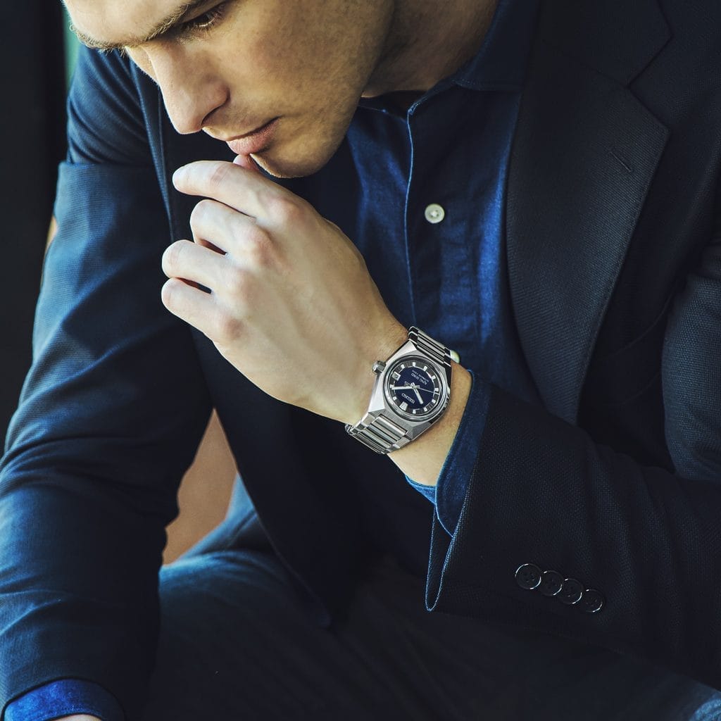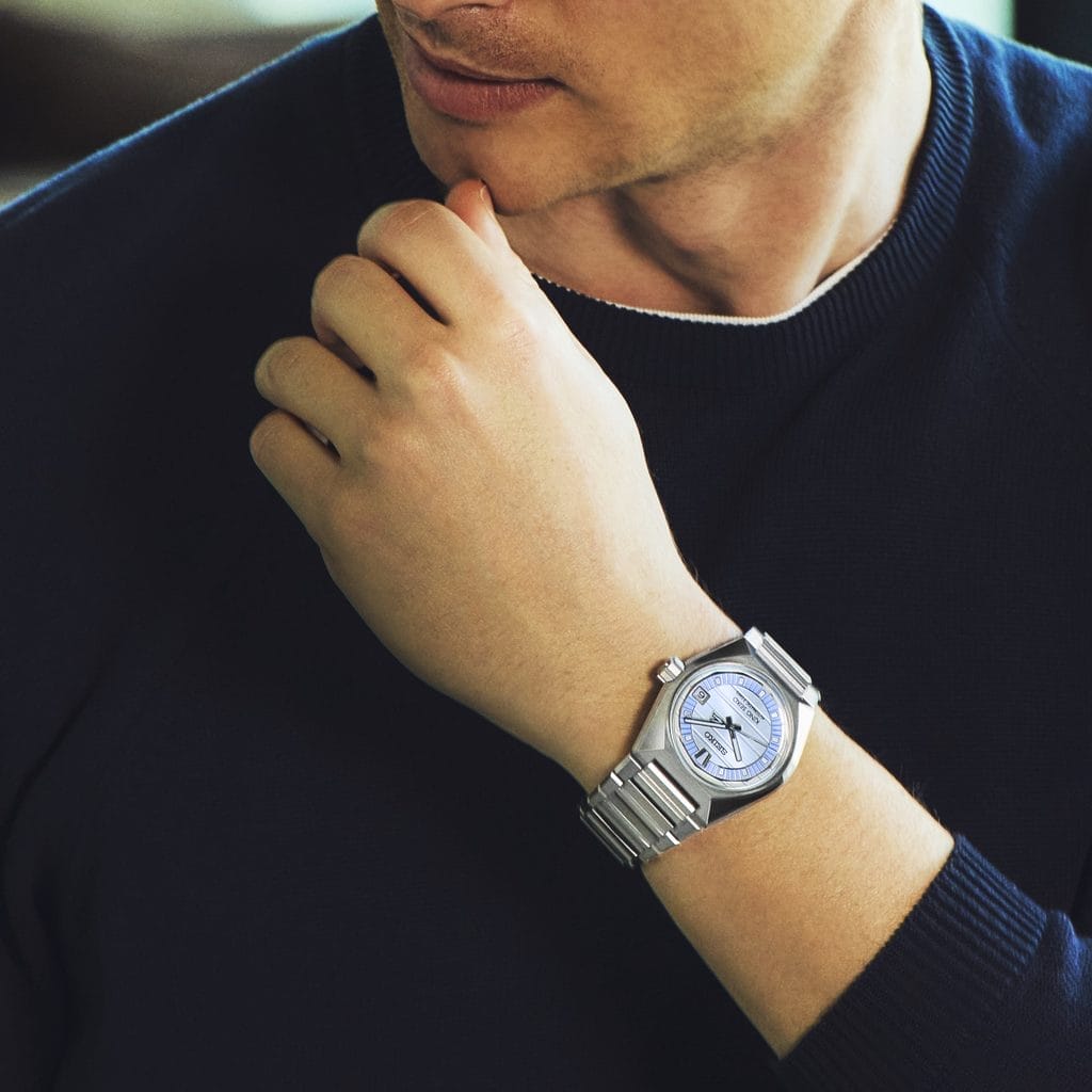 En 1972, King Seiko, connue pour ses designs classiques, dévoilait la VANAC, une collection innovante aux couleurs vives et aux designs multiformes. Aujourd’hui, après plus de 50 ans, une nouvelle VANAC perpétue cet esprit d’avant-garde et ouvre de nouvelles perspectives pour King Seiko. Le design du boîtier et du cadran s’inspire de l’horizon de Tokyo, un panorama emblématique souvent représenté dans l’art, le cinéma et la culture populaire, dont les nuances évoluent au fil de la journée. Si la VANAC affiche une angularité marquée et dynamique, lui donnant l’apparence d’un bloc de métal sculpté, son design sans lunette lui confère une silhouette élégante. Le bracelet, spécialement conçu pour cette nouvelle édition, associe des maillons aux finitions polies miroir et brossées, garantissant un confort optimal au poignet et une sophistication inimitable.