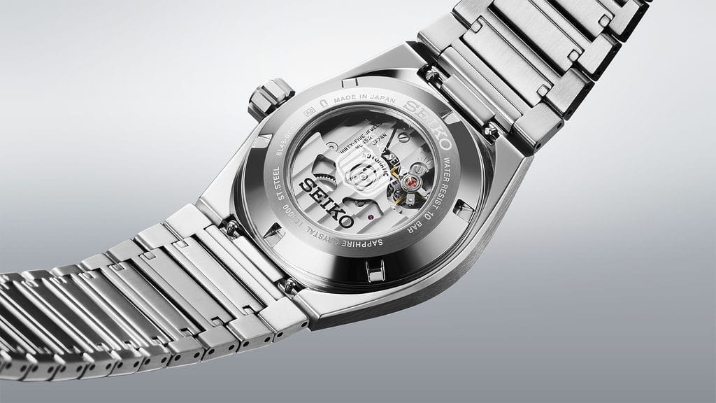 Le cadran arbore un motif de rayures horizontales et des index positionnés sur un anneau distinct, intégré à sa surface. L’index à 12 heures et le contrepoids de l’aiguille des secondes dessinent une silhouette distinctive en forme de « V », en référence à l’initiale du nom de la collection. Le raffinement du mouvement peut être admiré à travers le fond de boîte en verre saphir. En effet, la nouvelle VANAC est la première montre King Seiko à être dotée d’un fond transparent depuis la renaissance de la collection en 2022. Le nouveau calibre 8L45 offre une réserve de marche de 72 heures grâce à un ressort moteur optimisé et affiche une précision de +10 à -5 secondes, incarnant l’excellence du savoir-faire horloger mécanique de Seiko.