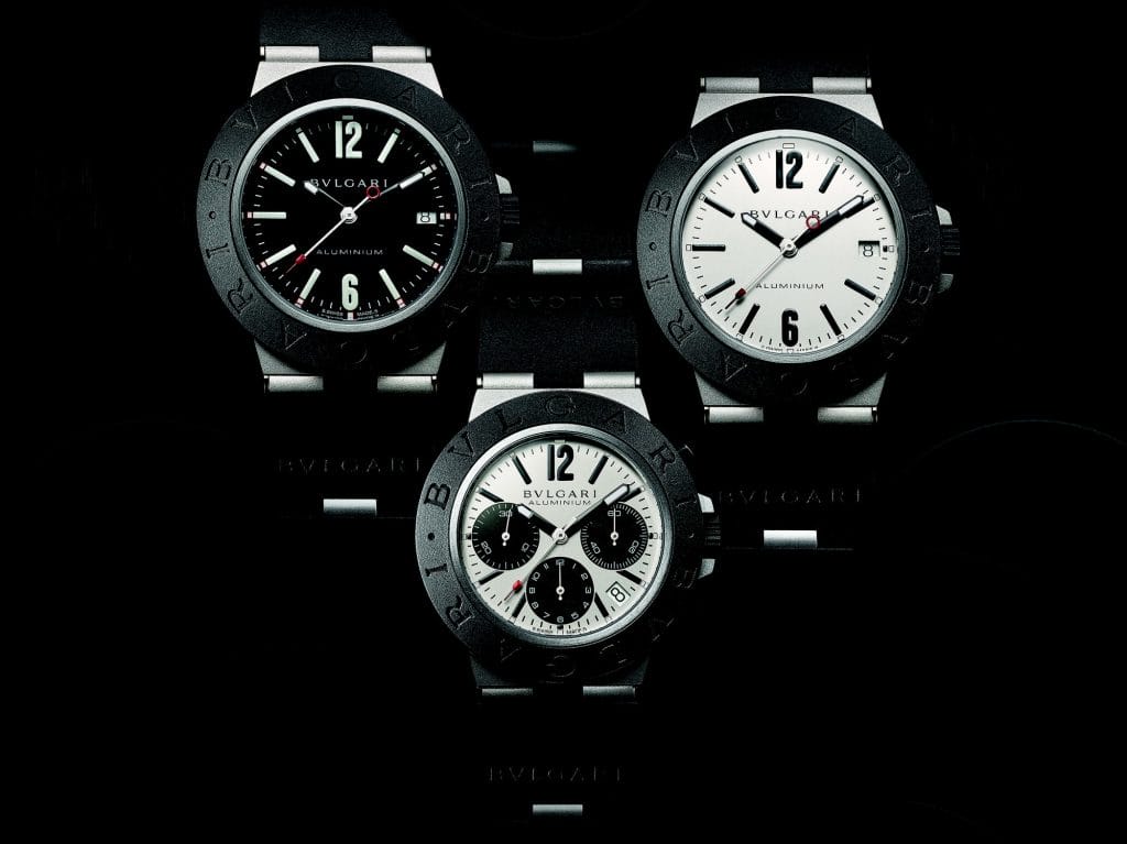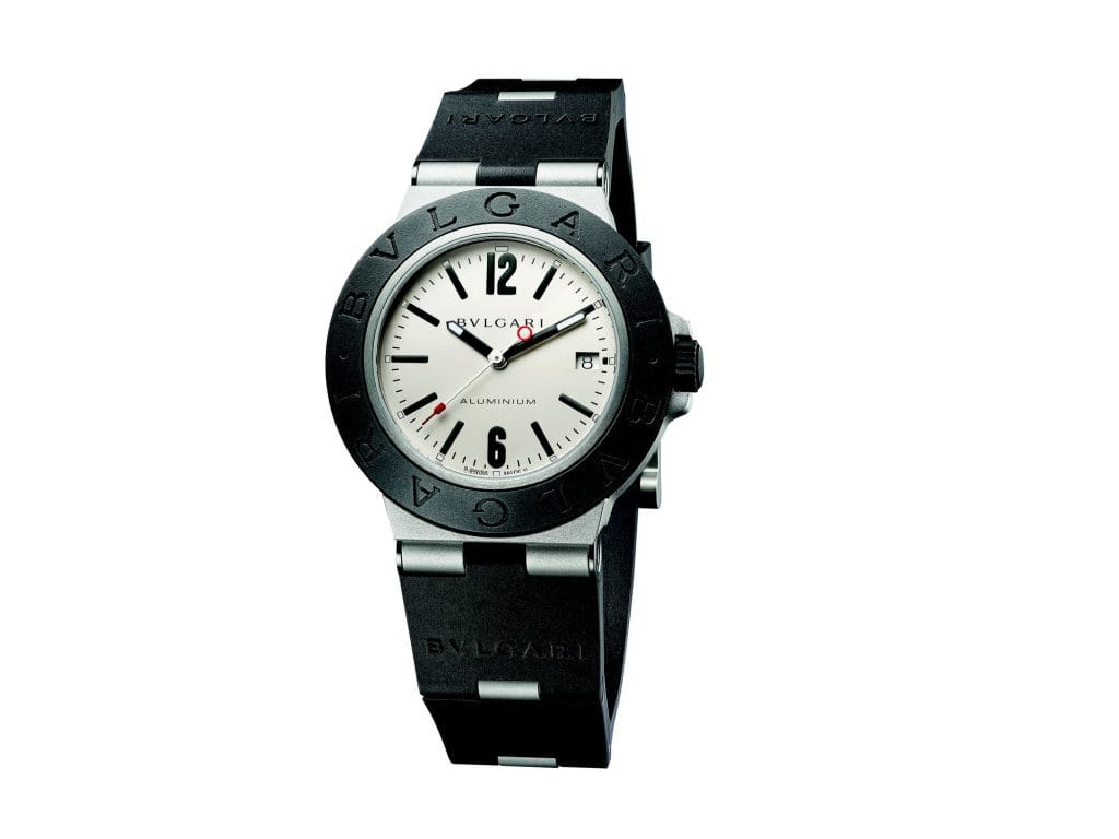 Flashback : en 1998, Bvlgari, une des Maison joaillières les plus réputées au monde, présente une collection réalisée avec des matériaux totalement inédits. De l’aluminium et du caoutchouc, associés à un design graphique en noir et blanc, composent une des montres « sport » les plus innovatrices et moderne de la décennie.