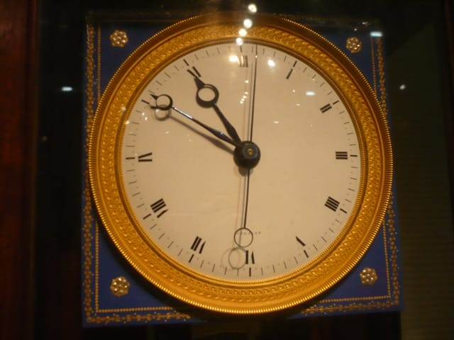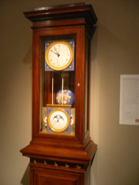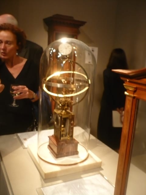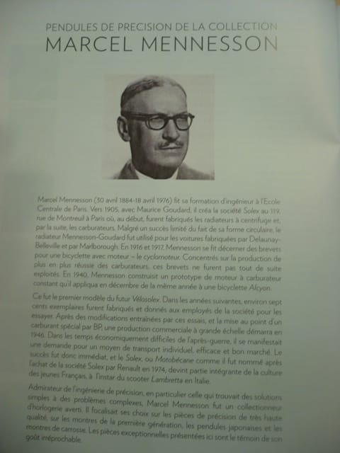 Lundi 25 Octobre, je me rends sur les lieux situés presque en face du Palais de L’Élysée. Les locaux comme l’accueil sont agréables, et je me dirige dans cette grande salle où sont exposées les pendules. Cette collection appartient aux héritiers de Marcel Mennesson qui fut le fondateur de la société Solex.