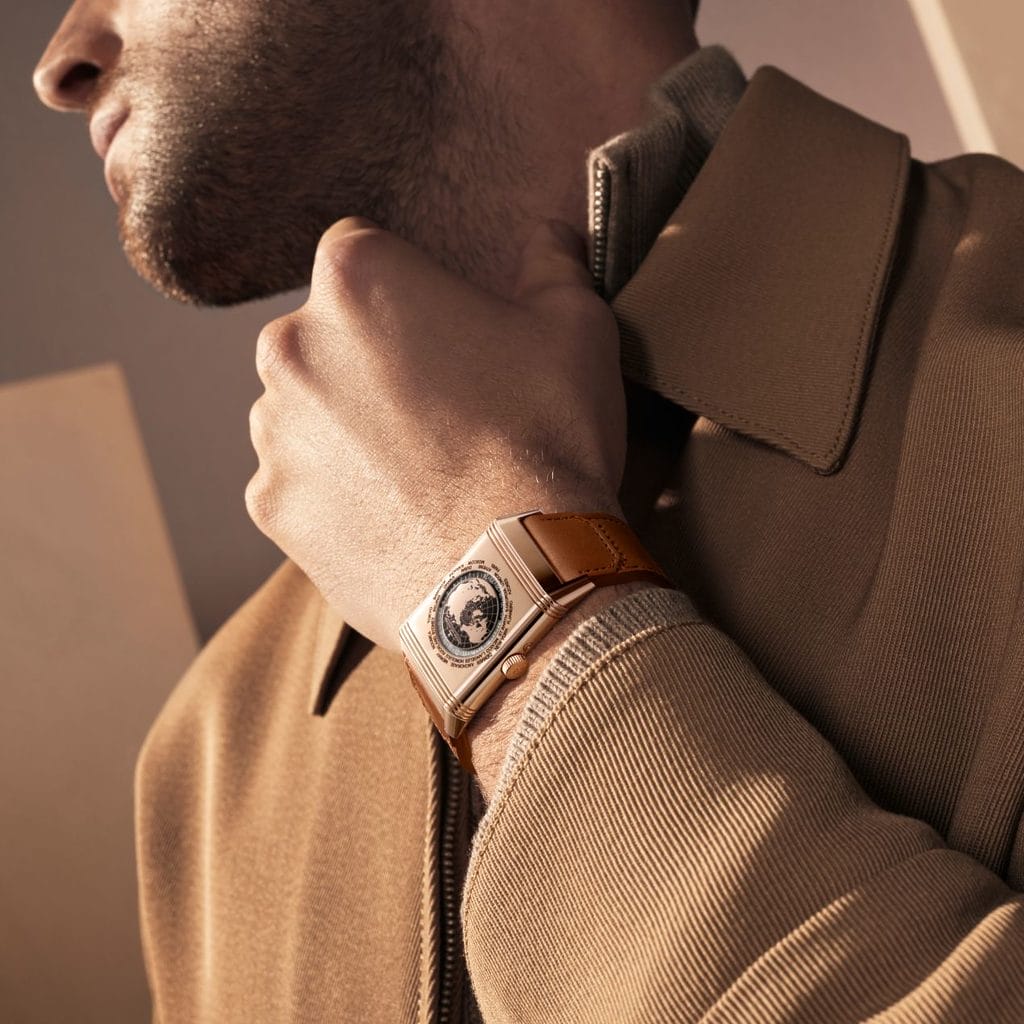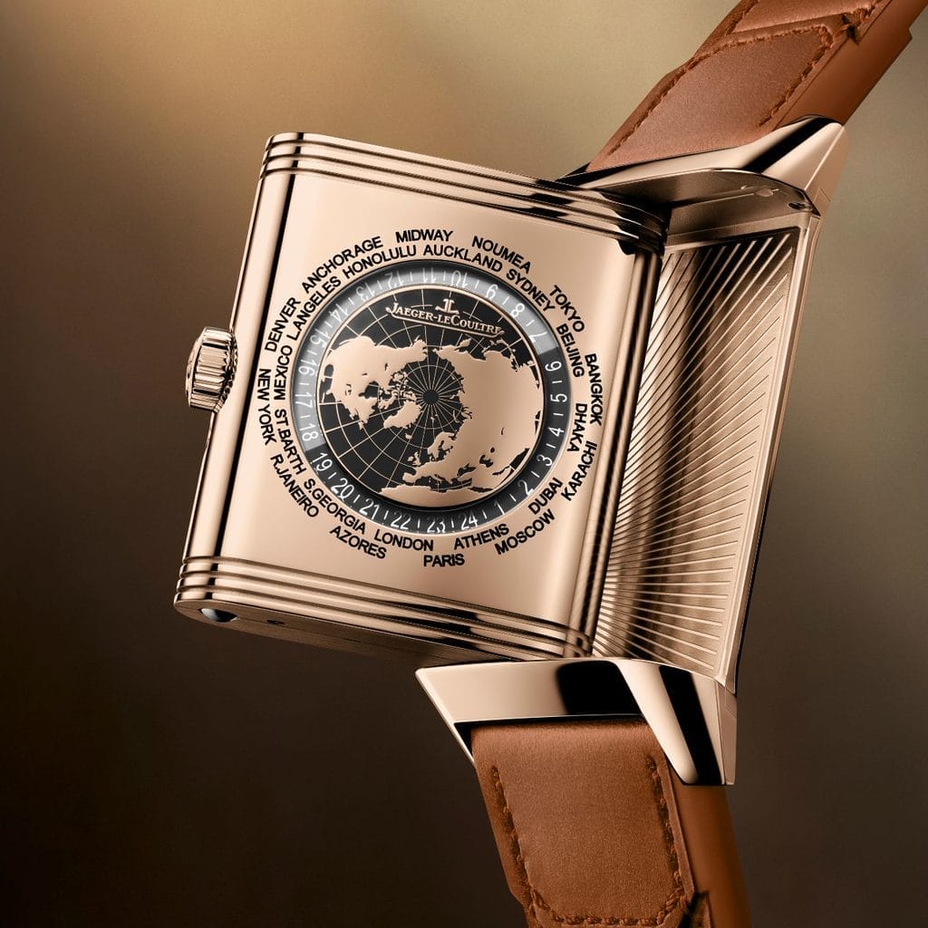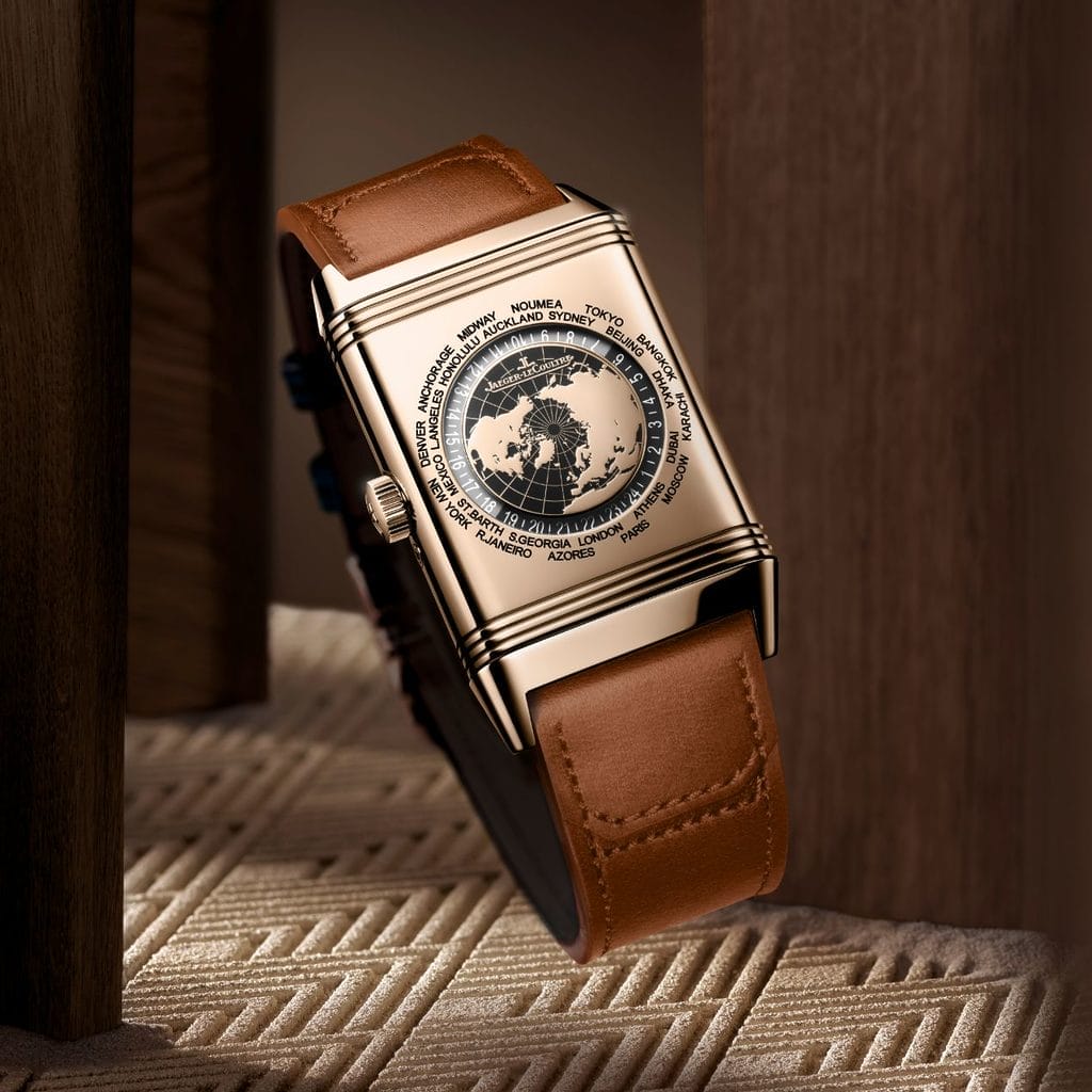 Affichant l’heure dans 24 fuseaux horaires, la Reverso Tribute Geographic transforme le poignet en fenêtre sur le monde. Inspirée de la normalisation du temps établie en 1884, cette complication poétique se dévoile ici sous une forme à la fois technique et artistique. L’heure universelle, déjà explorée par la Maison dès 1958, trouve une nouvelle expression en 2025 dans cette Reverso Tribute, fidèle à l’esprit d’aventure et d’innovation de la Manufacture.