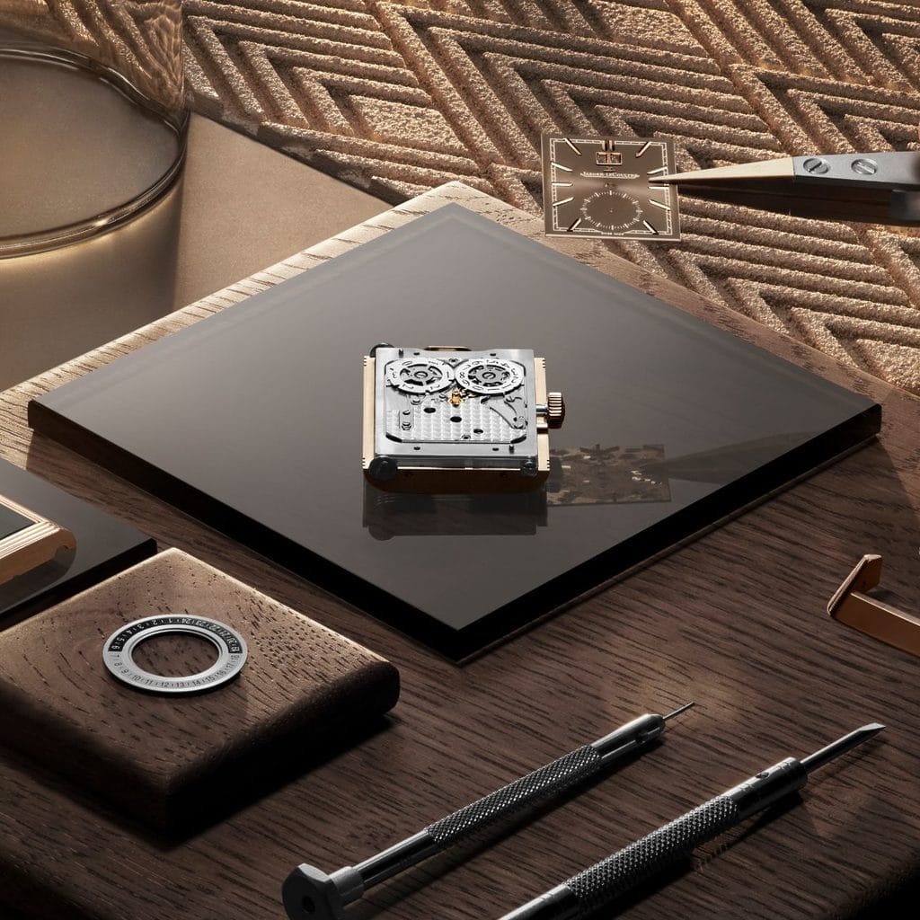 Le calibre 834, entièrement développé et assemblé au sein de la Manufacture, a été conçu spécialement pour s’adapter au format rectangulaire de la Reverso. Contrairement aux modules ajoutés, il s’intègre pleinement au boîtier et offre une réserve de marche de 42 heures.