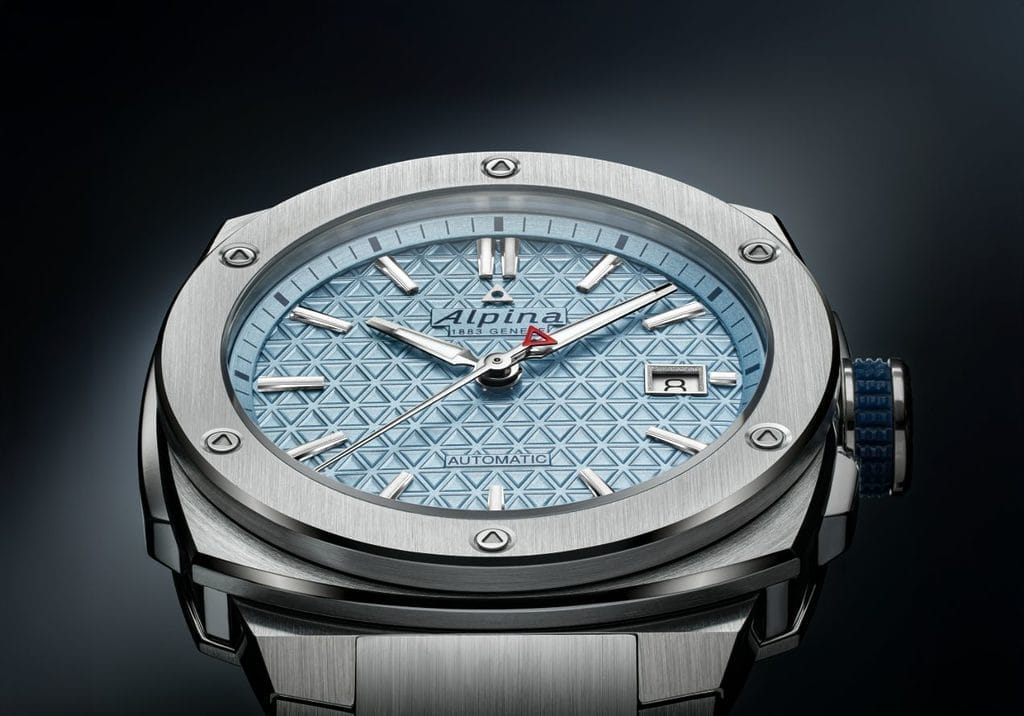 Au cœur de cette composition raffinée, le cadran signature de l’Alpiner Extreme Automatic se distingue par sa nouvelle teinte exclusive. Son relief triangulaire s’habille désormais d’un bleu glacier inédit, en hommage aux glaciers alpins. Cette teinte, inspirée des eaux glacées prises dans la roche, se pare d’un subtil reflet gris minéral.