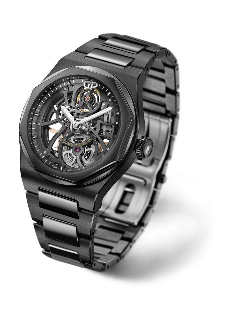 Dans sa livrée noire, la Laureato Skeleton Ceramic gagne de nouveaux registres d’expression. Plus sobre et plus technique, elle tire profit des infinies possibilités qu’offre la céramique. Girard-Perregaux rappelle ainsi que le registre sport-chic n’est pas qu’une formule toute faite ou un vain mot. La Laureato Skeleton Ceramic est une montre sport et une montre chic, à parts égales et entières. Cette œuvre horlogère polyvalente et qui dure est une icône.