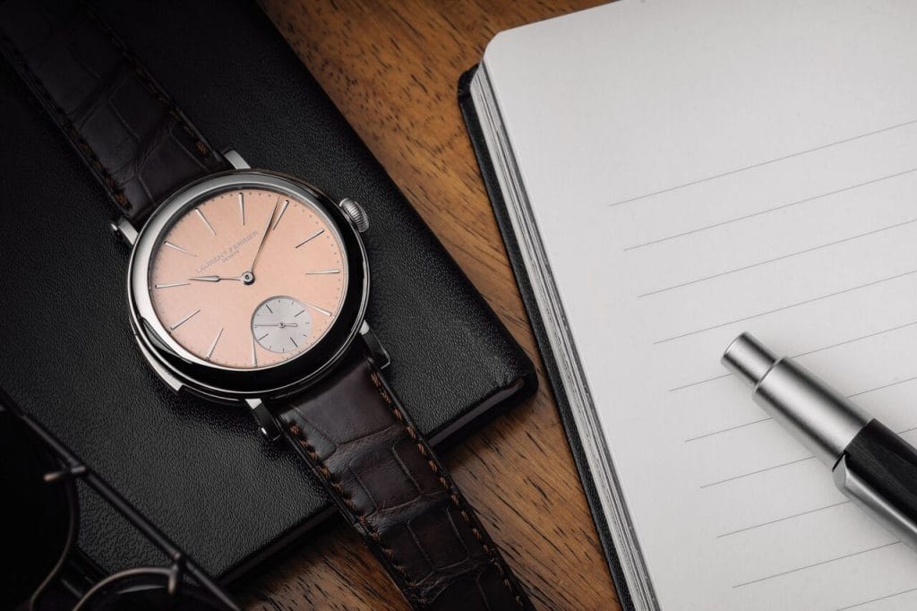 Pour une expérience parfaite, Laurent Ferrier préconise de poser la Répétition Minutes bien à plat pour donner un effet de caisse de résonance et de se laisser ainsi envoûter par le charme de la sonnerie.