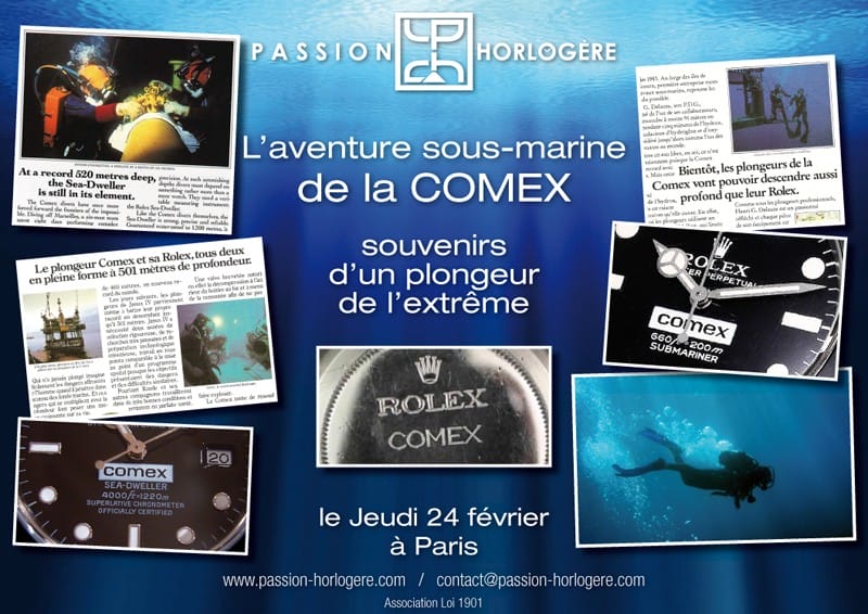 Jeudi 24 février Passion Horlogère organise une rencontre à Paris autour de la thématique « Les montres de l’aventure sous-marine ». Pour cette occasion, nos plus belles plongeuses seront de sortie et nous aurons l’immense plaisir d’avoir la présence d’un scaphandrier de l’extrême ayant réalisé des expériences pour la COMEX et étant toujours en activité dans le milieu subaquatique. Ce professionnel passionné d’horlogerie partagera son expérience avec les participants à la soirée, entre récits d’exploits et anecdotes des profondeurs.