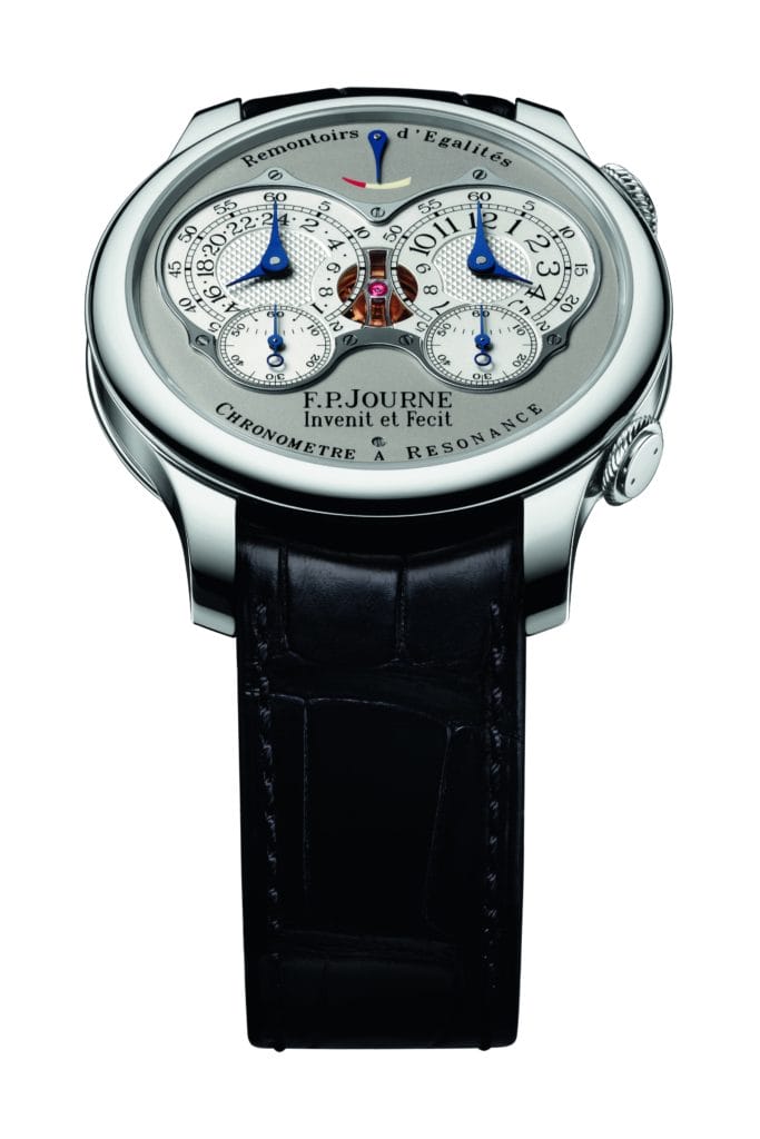 En 2010, primé «Montre à Grande Complication» au Grand Prix d’Horlogerie de Genève et célébrant le 10e anniversaire de l’illustre Chronomètre à Résonance, F.P.Journe lui offre un nouveau visage. Dans une ultime quête de précision, le cadran à 9 heures propose un affichage digital sur 24 heures, définissant avec précision les heures diurnes des heures nocturnes. Le cadran à 3 heures en argent guilloché affiche l’heure locale mais peut également afficher le même fuseau horaire.