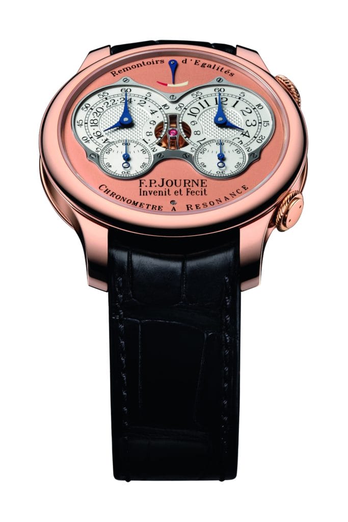 Présenté en 2000, le Chronomètre à Résonance représente un des défis les plus fous dans le domaine de la montre mécanique! Il signe distinctement les recherches du maître horloger François-Paul Journe sur la précision. Utilisant le phénomène naturel de la résonance, ce mécanisme révolutionna les standards établis et offrit une précision encore jamais égalée dans la montre-bracelet mécanique. François-Paul Journe réalisa plusieurs versions de son Chronomètre à Résonance au cours de ces 2 dernières décennies. Les 20 premiers modèles, connus sous le nom de pièces Souscription, produits sur commande étaient destinés aux clients ayant acheté le premier garde-temps F.P.Journe, le «Tourbillon Souscription».
