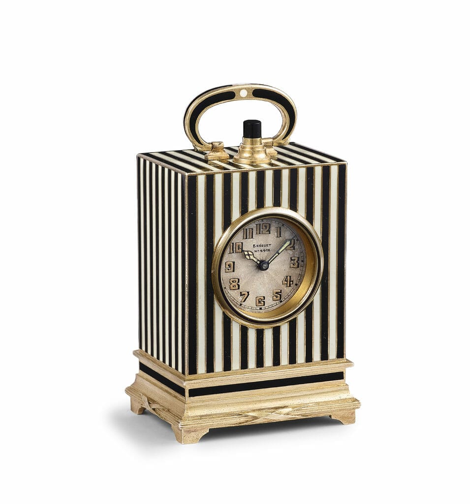 Cette pièce de fantaisie, à « boite cubique » en bronze émaillé et cadran à « chiffres cubistes » a été fabriquée en 1921.