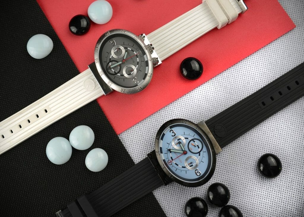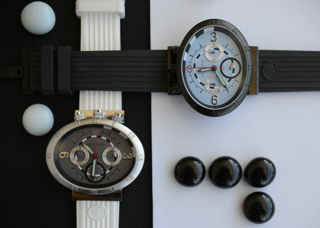 Chaque montre Restrepo est présentée dans un coffret soft touch avec 2 bracelets interchangeables noir et banc. La marque propose également de personnaliser sa montre avec un bracelet de couleur.