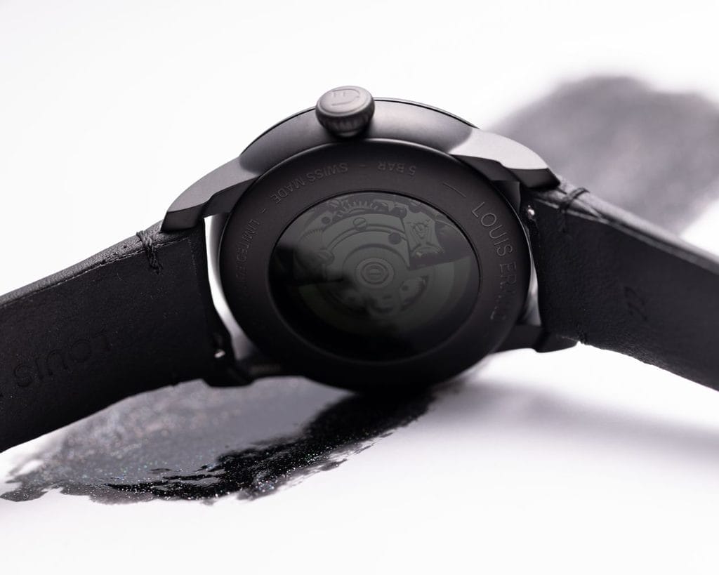 Le Régulateur Louis Erard x Olivier Mosset. Louis Erard franchit une nouvelle frontière, en amenant sa belle horlogerie dans le monde de l’art contemporain. Une nouvelle collaboration, avec une figure historique et rebelle de l’art abstrait, le Suisse Olivier Mosset. Un modèle noir sur noir incrusté de paillettes. Édition limitée à 178 exemplaires.