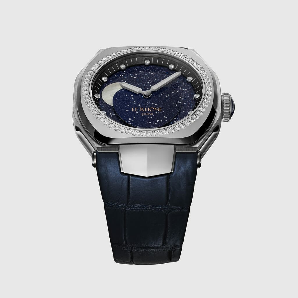 A l’occasion de la semaine horlogère genevoise 2023 et de son dixième anniversaire, Le Rhöne renforce sa collection féminine en déclinant son modèle phare, la Moön 37mm, dans une nouvelle génération de montres pour la première fois réalisées en titane, un matériau qui présente l’équilibre parfait entre solidité, légèreté, résistance à la corrosion et travail de la matière.