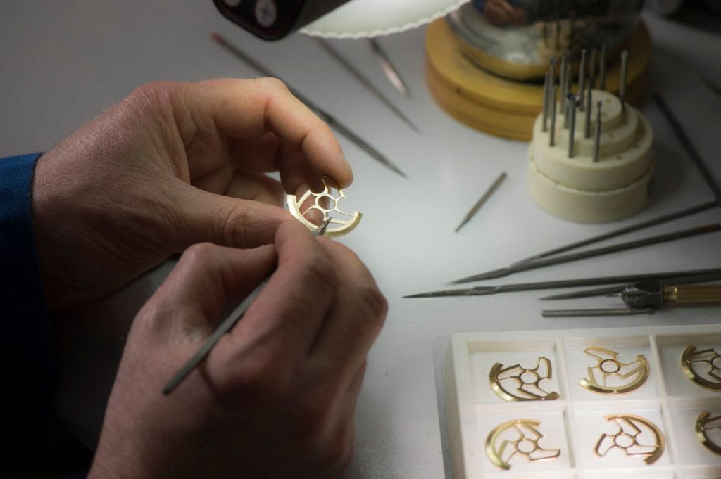 Certains s’attachent à mettre les points sur les i. D’autres décident d’en positionner deux sur le o. Loin d’être un simple signe orthographique, ce tréma évoque alors un trait d’union, celui qui scelle une amitié puis une aventure entreprise depuis 2013 par le binôme composé par Loïc Florentin et Timo Rjakoski. Si ce symbole se retrouve sur le nom de leur société, Le Rhöne, ce n’est pas non plus le fruit du hasard. Car ce nom nous renvoie aux origines de l’horlogerie et plus précisément au tout début du milieu XVIe siècle, lorsque Jean Calvin interdit d’arborer à Genève tous les signes ostentatoires. Joaillers et orfèvres orientent alors leurs compétences vers l’horlogerie. Deux siècles plus tard, 4 000 cabinotiers dénommés ainsi car ils travaillaient dans des cabinets, sont disséminés sur les rives du Rhône. Cette localisation n’est pas anodine. La force motrice de l’eau leur offre l’énergie suffisante pour réaliser un large éventail d’opérations inhérentes à la fabrication des montres. Durant une longue période, les maîtres horlogers ont consolidé leurs connaissances.