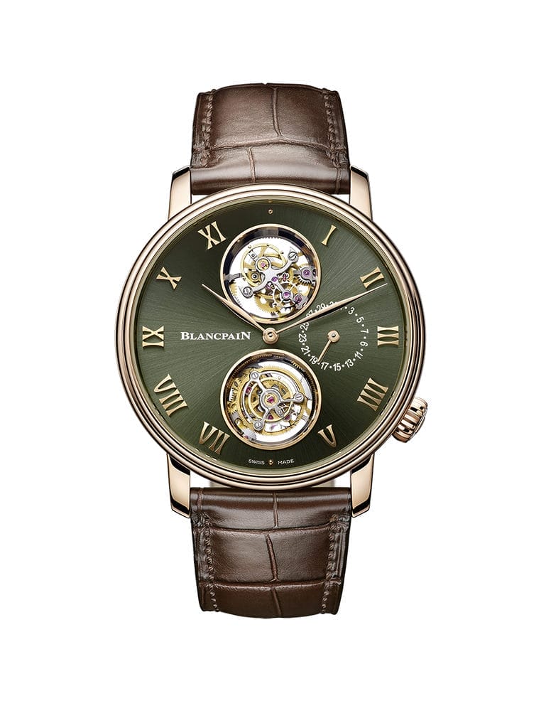 Emboitant le pas à son quantième perpétuel, Blancpain est heureuse de parer ses modèles Villeret Extraplate, Quantième Complet, Quantième Phases de Lune et Tourbillon Carrousel de son très apprécié cadran vert soleillé, dont l’inspiration provient des sapins de la Vallée de Joux bordant la Manufacture du Brassus. Du modèle le plus sobre au plus techniquement compliqué, Blancpain renforce l’écho à son histoire en implantant davantage les forêts de cette vallée dans la collection.