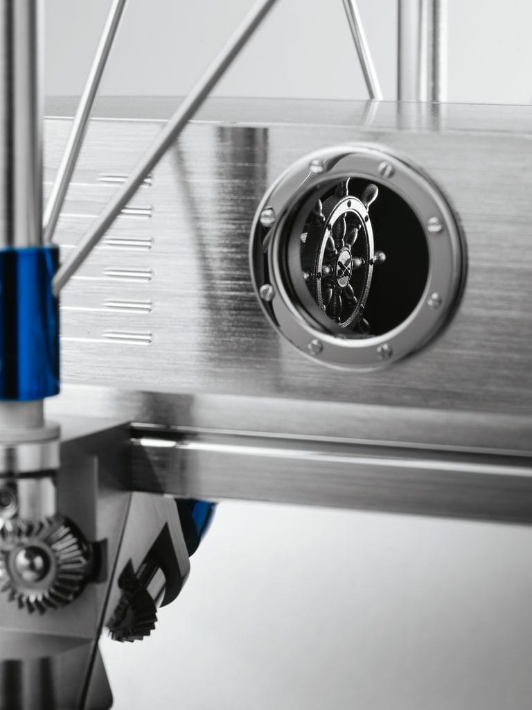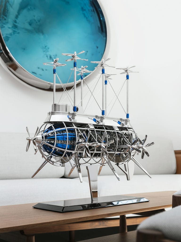 L’Albatross joue dans sa propre catégorie : il est très rare de combiner une horloge de précision à sonnerie et un automate. Le concept ravive l’esprit d’aventure autrefois véhiculé par Jules Verne et les aéronefs ne manqueront certainement pas de frapper les imaginations quand elles prendront place dans les foyers à travers le monde.