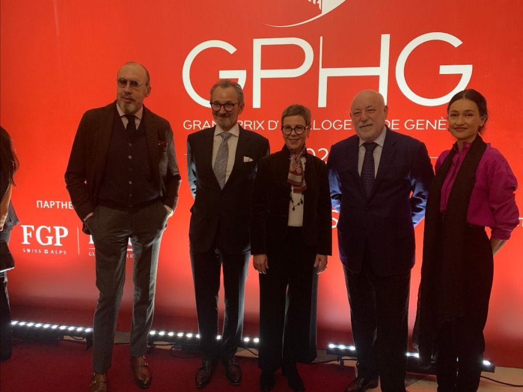 Vladimir Voronchenko, Directeur du Musée Fabergé; Raymond Loretan, Président du GPHG, Krystyna Marty-Lang, Ambassadrice de Suisse à Moscou; Viktor Vekselberg, Président du Conseil de surveillance de la Fondation Link of Times; Carine Maillard, Directrice du GPHG