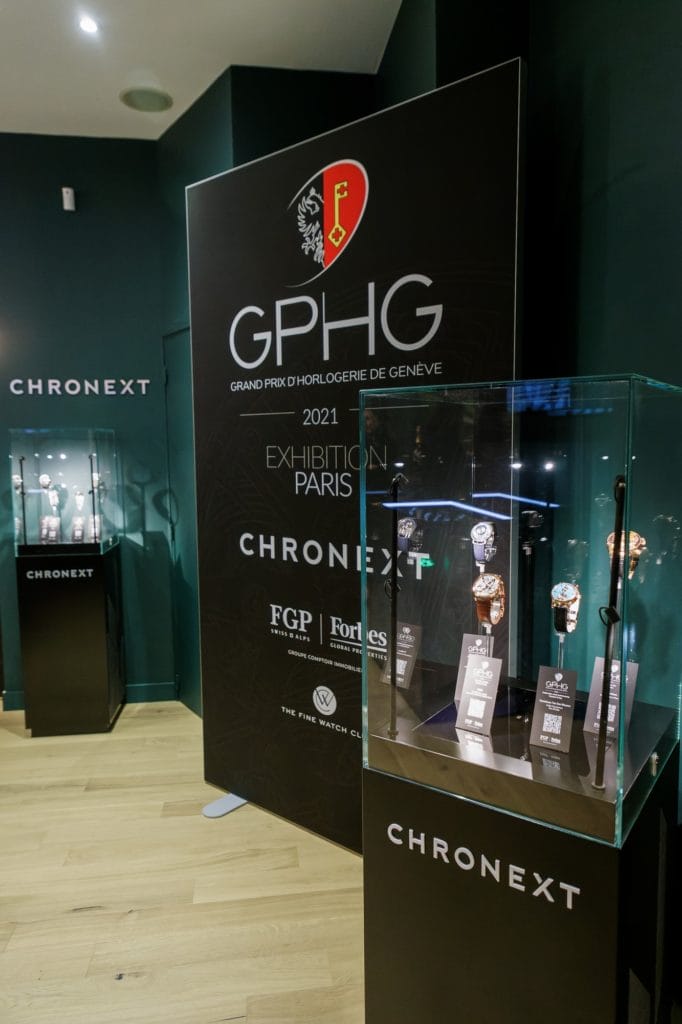 Le nouveau Lounge Chronext de la rue Marbeuf à Paris a accueilli du 2 au 5 décembre les montres lauréates des 18 prix de l’édition 2021 du Grand Prix d’Horlogerie de Genève (GPHG). La presse spécialisée était au rendez-vous lors du vernissage et les collectionneurs et passionnés ont pu découvrir ces garde-temps d’exception lors de multiples présentations privées accompagnées d’experts.