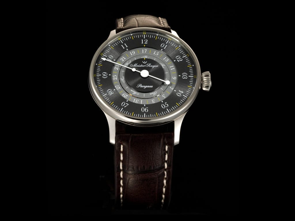 Depuis 2001, MeisterSinger perpétue l’art de l’horlogerie avec des montres mécaniques uniques, créées à Münster, en Allemagne. Sous la vision de son fondateur, créateur et directeur Manfred Brassler, chaque garde-temps s’inscrit dans une tradition culturelle et technique séculaire. Saviez-vous qu’avant le 18e siècle, toutes les horloges – de tour, de table et de poche – fonctionnaient avec une seule aiguille ? La Pangaea Day Date 365, avec son cadran au design historique, est une célébration de ces racines. Comme le souligne Brassler, créer une montre à une aiguille avec un cadran historique était une évidence. Après tout, l’aiguille unique symbolise un retour aux origines de la mesure du temps.