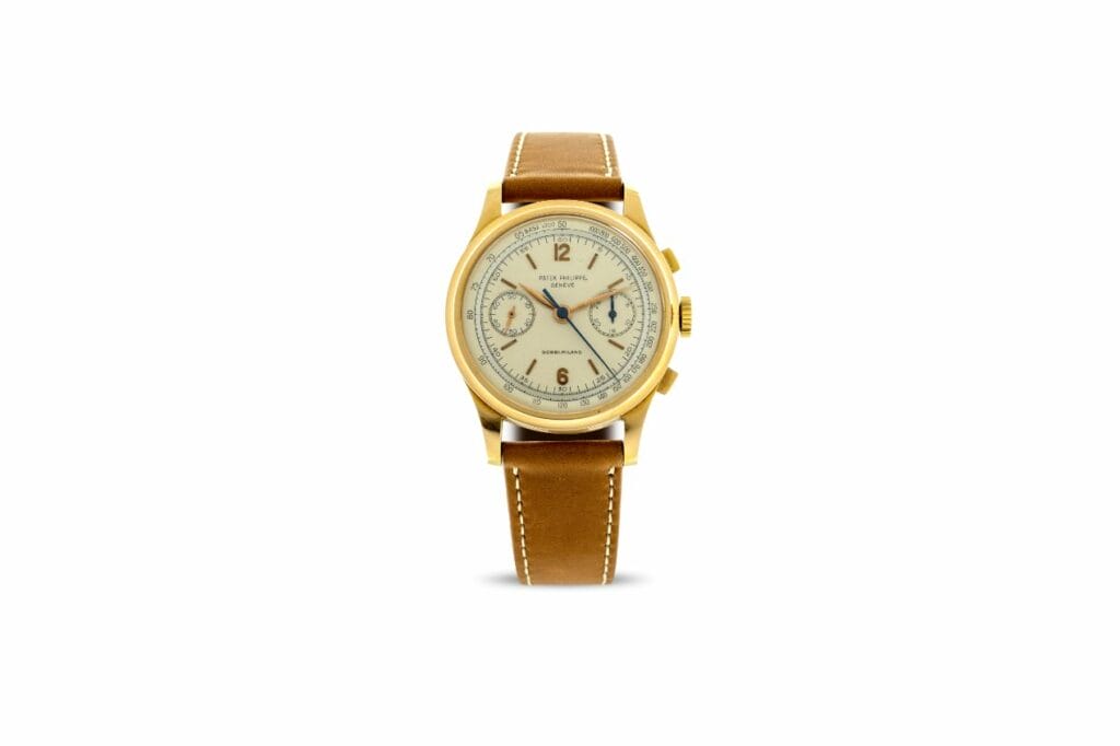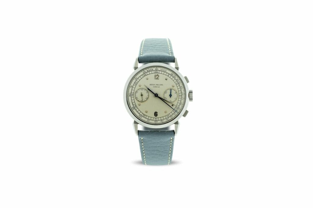 La couleur constitue d’ailleurs un élément majeur dans de nombreuses pièces signées Patek Philippe, à l’instar de la montre à heure universelle réf. 2523J en or jaune à 2 couronnes, avec son incroyable centre de cadran bleu émaillé. Seuls trois exemplaires existeraient. Parmi les modernes, notons la présence de la Nautilus 5711/1A-014 de 2021 dotée d’un cadran vert.
