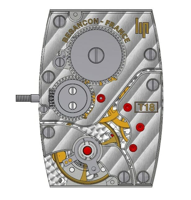 En 1933, un tout nouveau calibre de forme tonneau et de 18mm de large est commercialisé par la marque : le T18. Développé par l’ingénieur en chef de la marque M. André DONAT, sous l’impulsion du nouveau directeur technique Fred LIP qui rentre tout juste des Etats-Unis, le T18 innove autant par sa conception que par les techniques mises en œuvre pour sa fabrication. Pour la première fois, on divise la fabrication des pièces en plusieurs étapes, avec une extrême rigueur dans les respects des différentes côtes d’usinage, et l’on monte à la chaine les différentes pièces qui compose le mouvement.