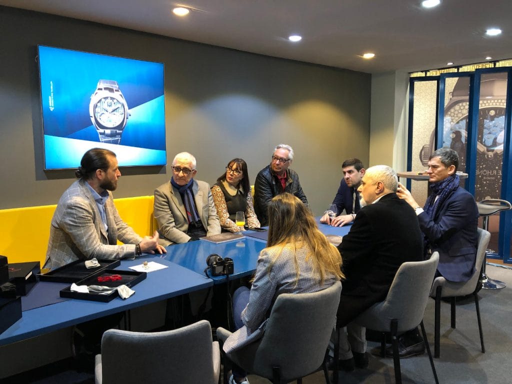 Loïc Florentin prenant le temps d’accueillir un groupe de collectionneurs français durant Baselworld 2019.