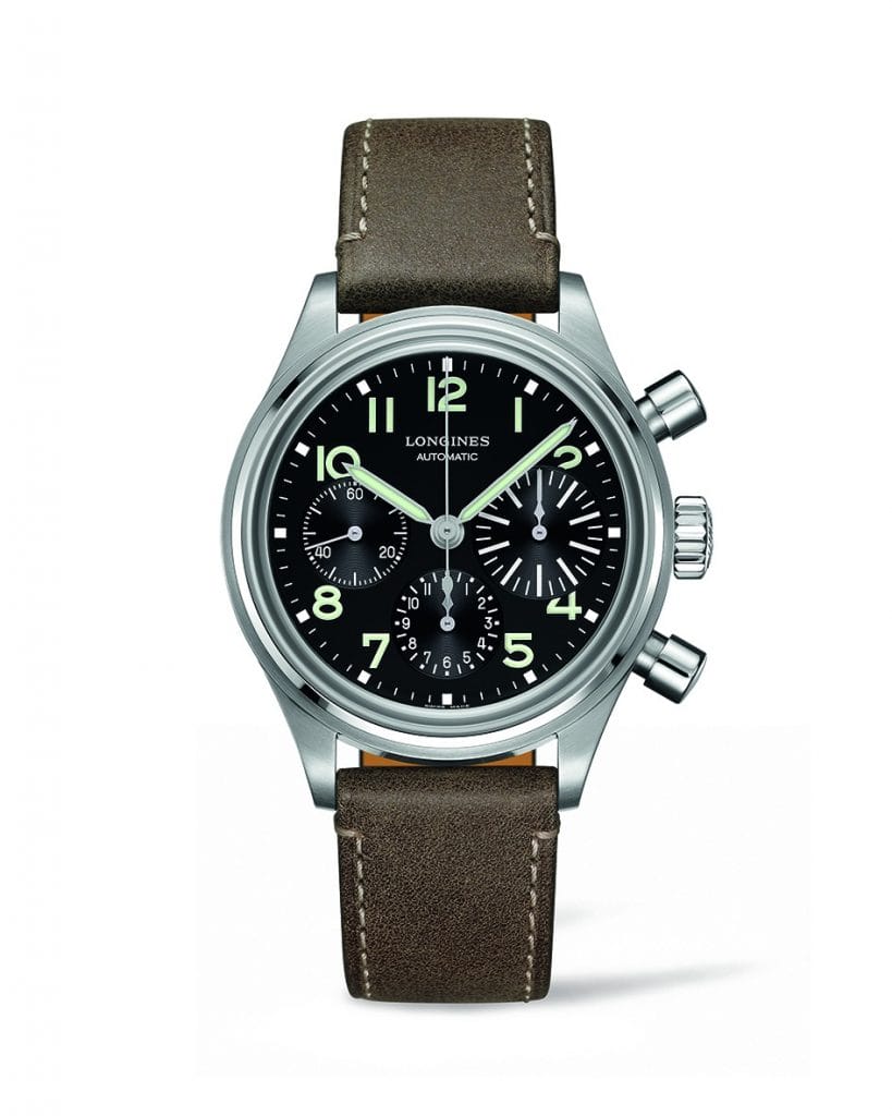 The Longines Avigation BigEye est inspirée d’un chronographe à l’esthétique typique de la grande époque de l’aviation. Fidèle à l’esprit des montres de pilote, ce modèle affiche un cadran très lisible mettant l’accent sur le compteur de minutes et des poussoirs imposants qui permettent au porteur de les manipuler tout en portant des gants.