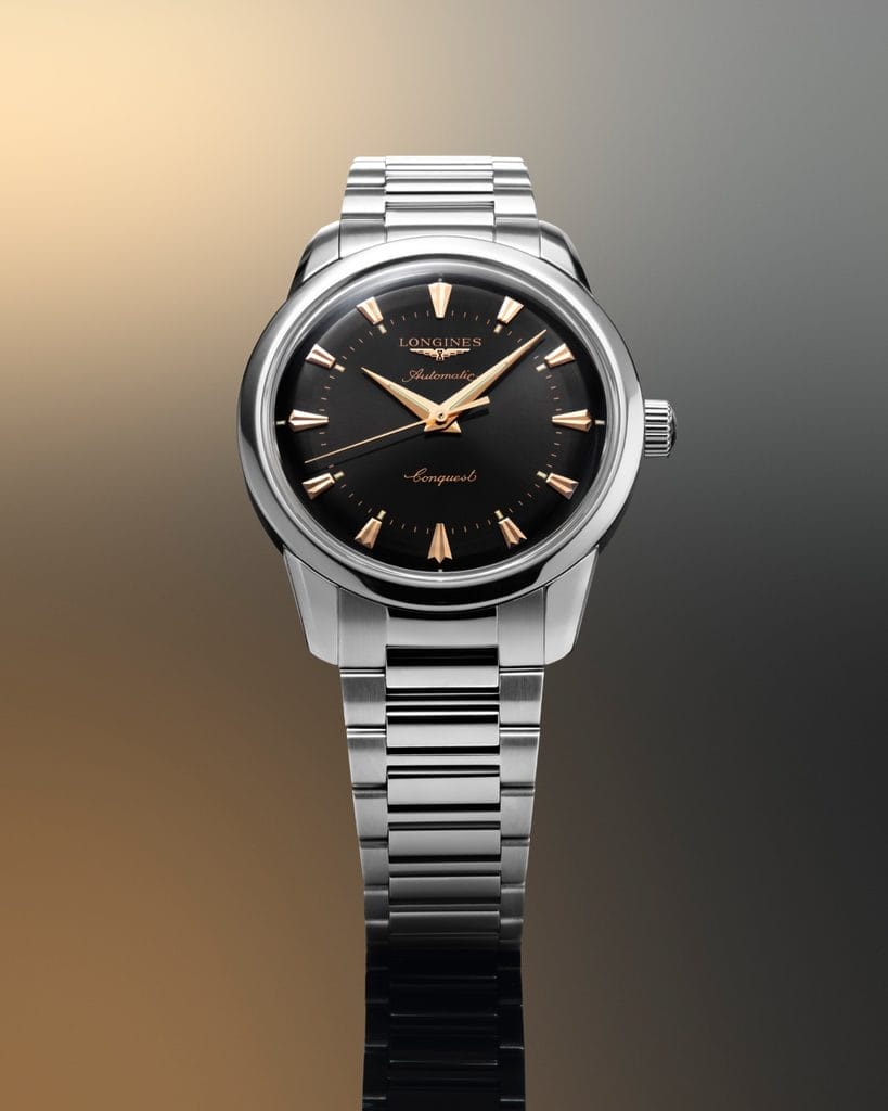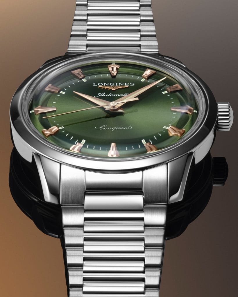 Chaque nouveau modèle Conquest Heritage reste fidèle à l’ADN des premières montres Conquest. On retrouve les éléments emblématiques : cadrans bombés aux teintes raffinées (bleu, vert, brun, argenté ou noir), index facettés appliqués dorés ou rhodiés, et aiguilles assorties revêtues de Super-LumiNova®. Le tout logé dans un boîtier rond en acier inoxydable de 38 mm ou 40 mm, dont les proportions classiques renforcent le caractère unisexe de la collection.