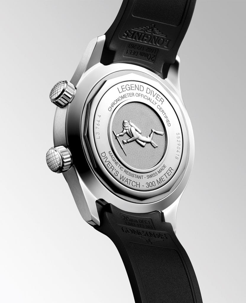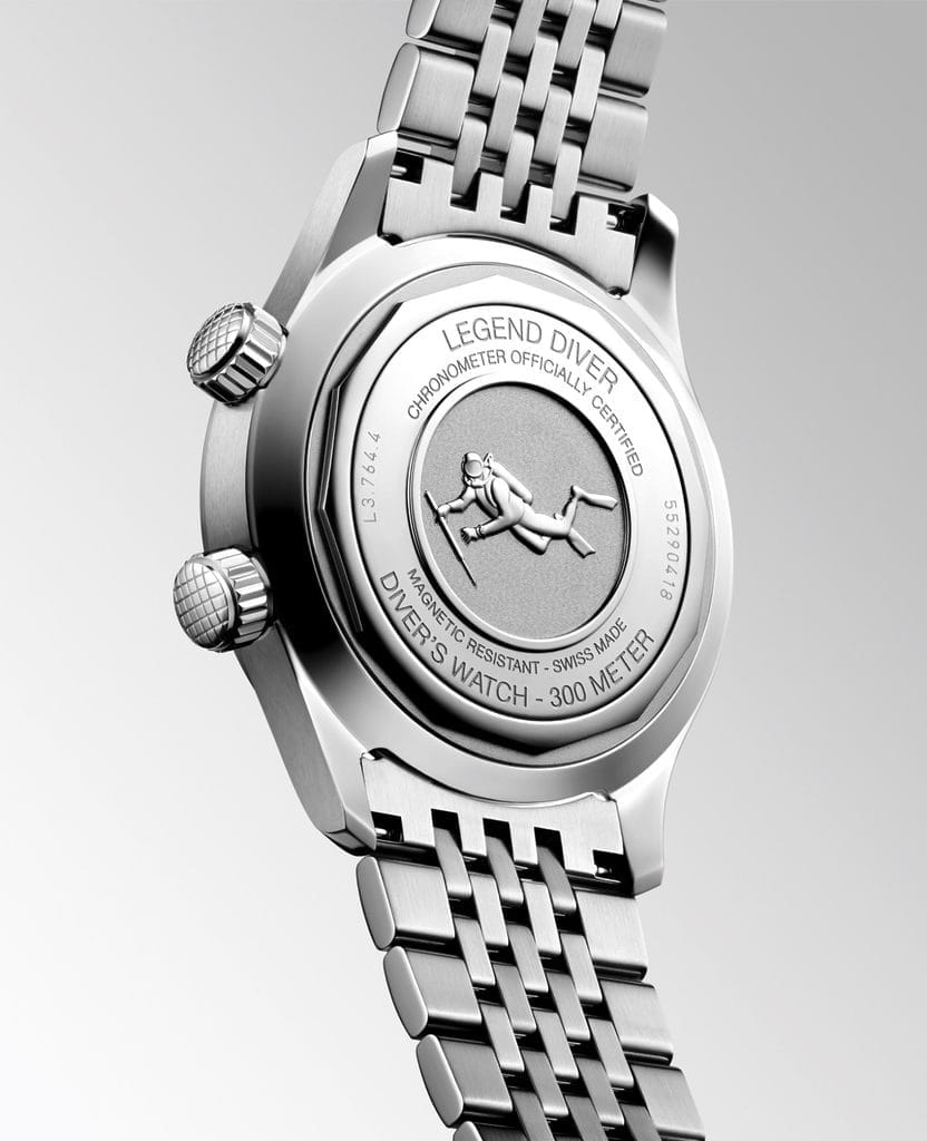 Toutes les nouvelles Legend Diver répondent aux exigences de la norme ISO 6425, garantissant leur statut de véritables montres de plongée. Étanches jusqu’à 300 mètres (30 bars), elles sont animées par le calibre exclusif L888.6 de Longines. Ce mouvement mécanique à remontage automatique, doté d’un spiral en silicium, offre une réserve de marche confortable de 72 heures et une résistance magnétique largement supérieure à la norme ISO 764.