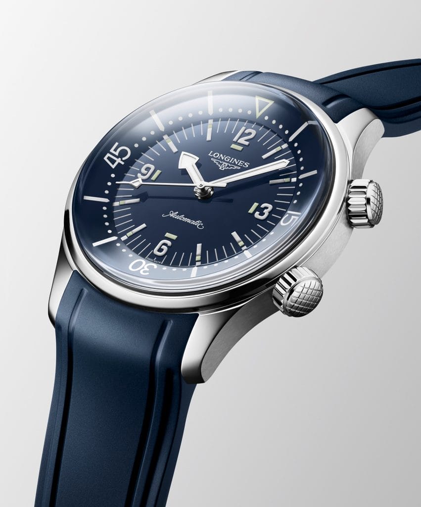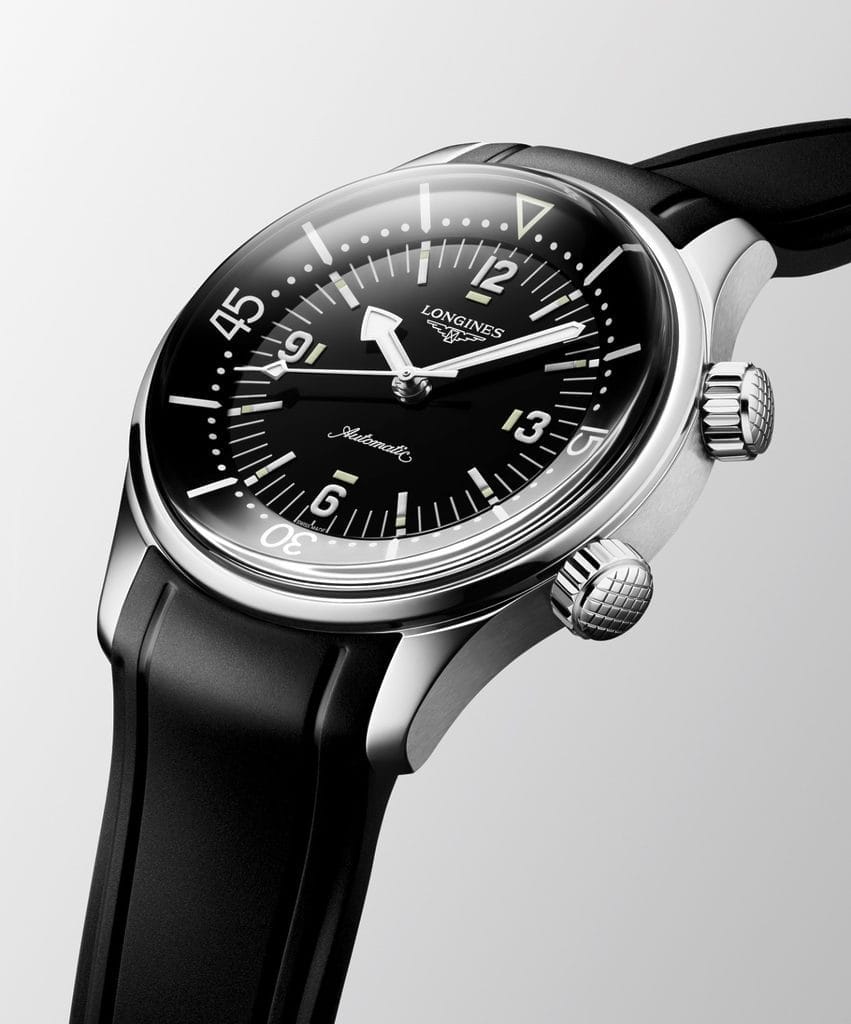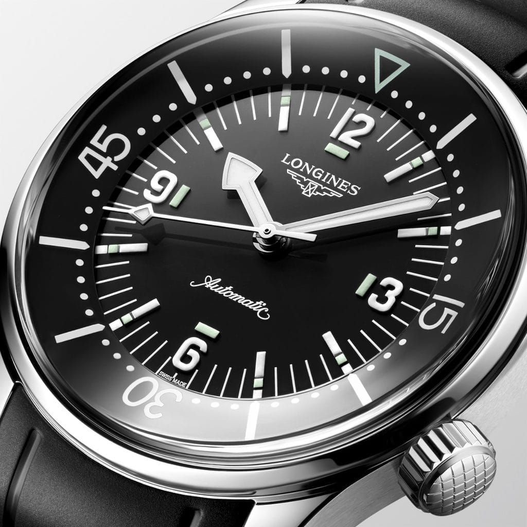 L’histoire de la Legend Diver s’écrit dans la profondeur. Dès ses débuts, ce modèle inspiré des boîtiers Super-Compressor se distingue par sa lunette tournante interne, solution ingénieuse pour éviter les manipulations accidentelles en immersion, inventée par Longines en 1936. Aujourd’hui, la Maison du sablier ailé revisite ce modèle historique dans un diamètre contenu de 39 mm, à la fois fidèle aux proportions d’époque et résolument contemporain dans son ergonomie.