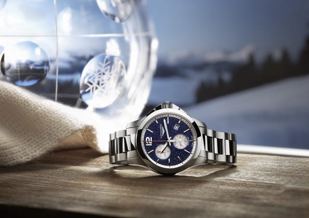 Partenaire privilégié du monde du ski depuis près d’un siècle, Longines présente une nouvelle déclinaison issue de sa ligne Conquest, personnalisée par son Ambassadrice de l’Elégance, la skieuse Mikaela Shiffrin. A l’image des pistes qu’elle dévale avec talent, le cadran en aventurine bleue de la Conquest Chronograph by Mikaela Shiffrin évoque le scintillement des cristaux de neige et, avec ses touches de rouge, cette pièce inédite reprend les couleurs du drapeau américain, pays de la championne. Subtil mélange de performance et d’élégance, les montres de la collection Conquest incarnent les liens étroits que Longines a tissés avec l’univers du sport.