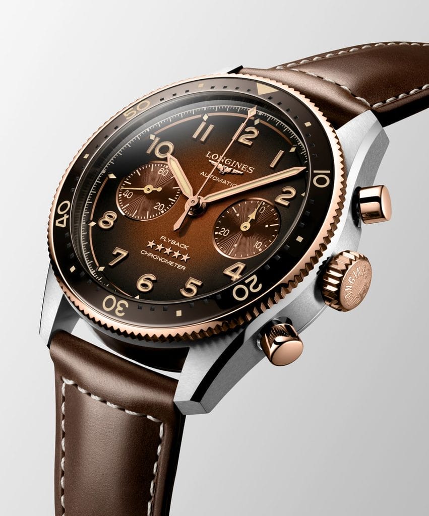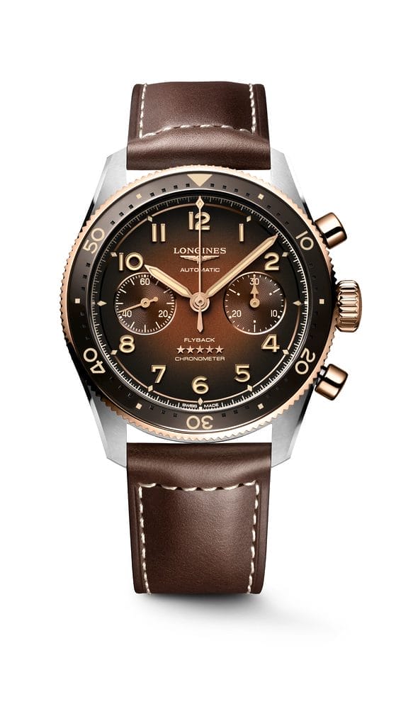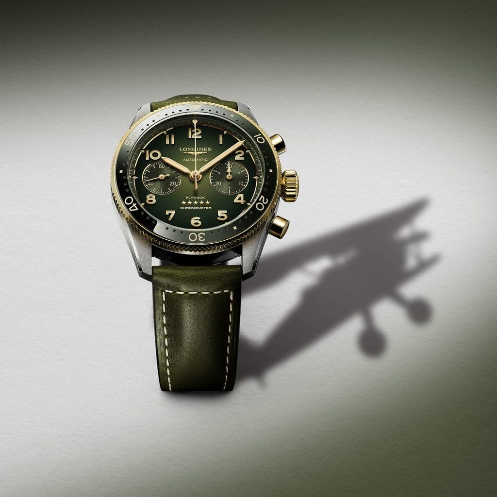 En 2024, la Longines Spirit Flyback s’étoffe de deux nouvelles versions verte ou brune, en acier et or 18 carats. Dévoilée l’année dernière, la ligne marque ainsi un nouveau chapitre dans la longue histoire des montres de pilote Longines.